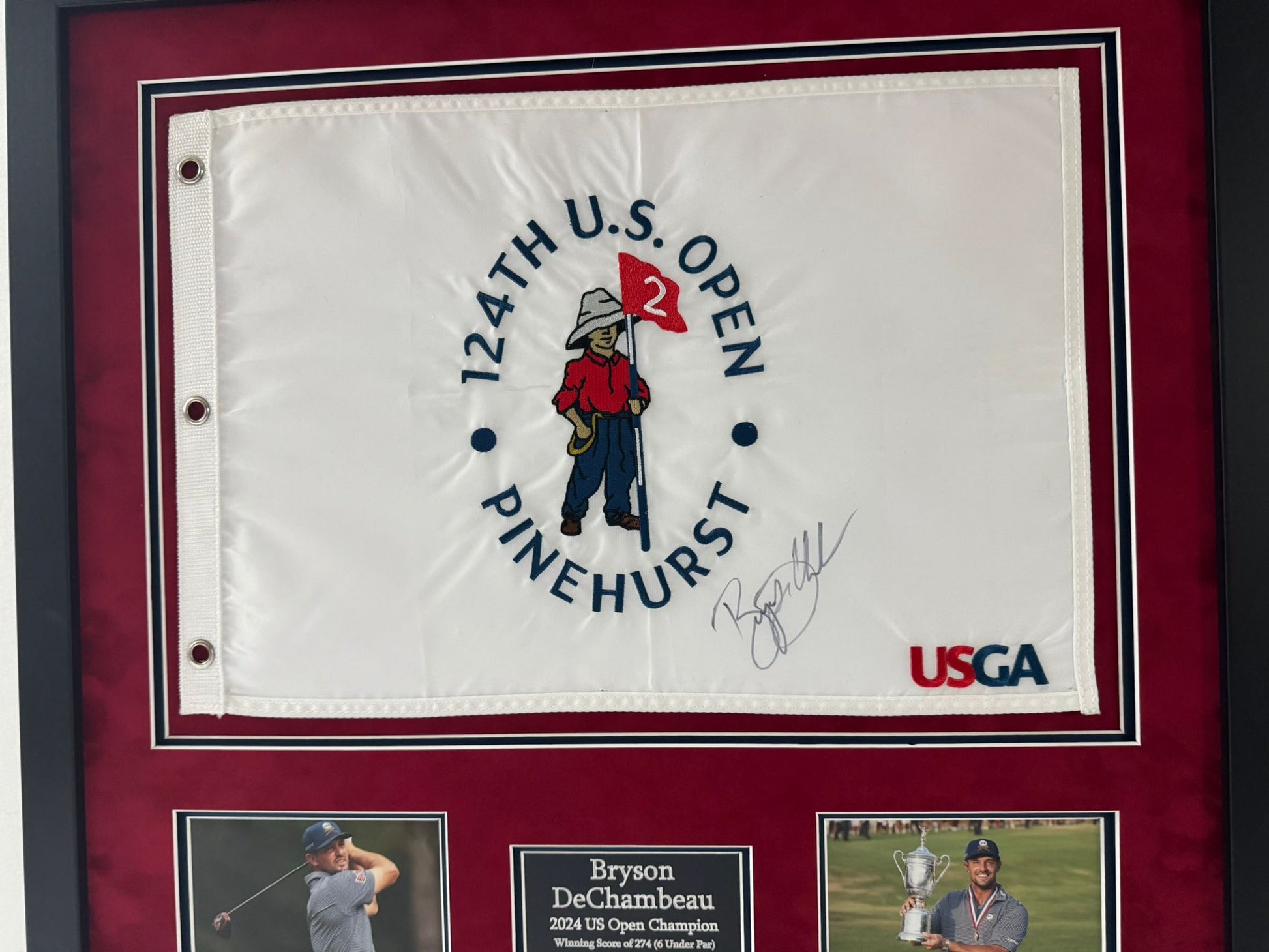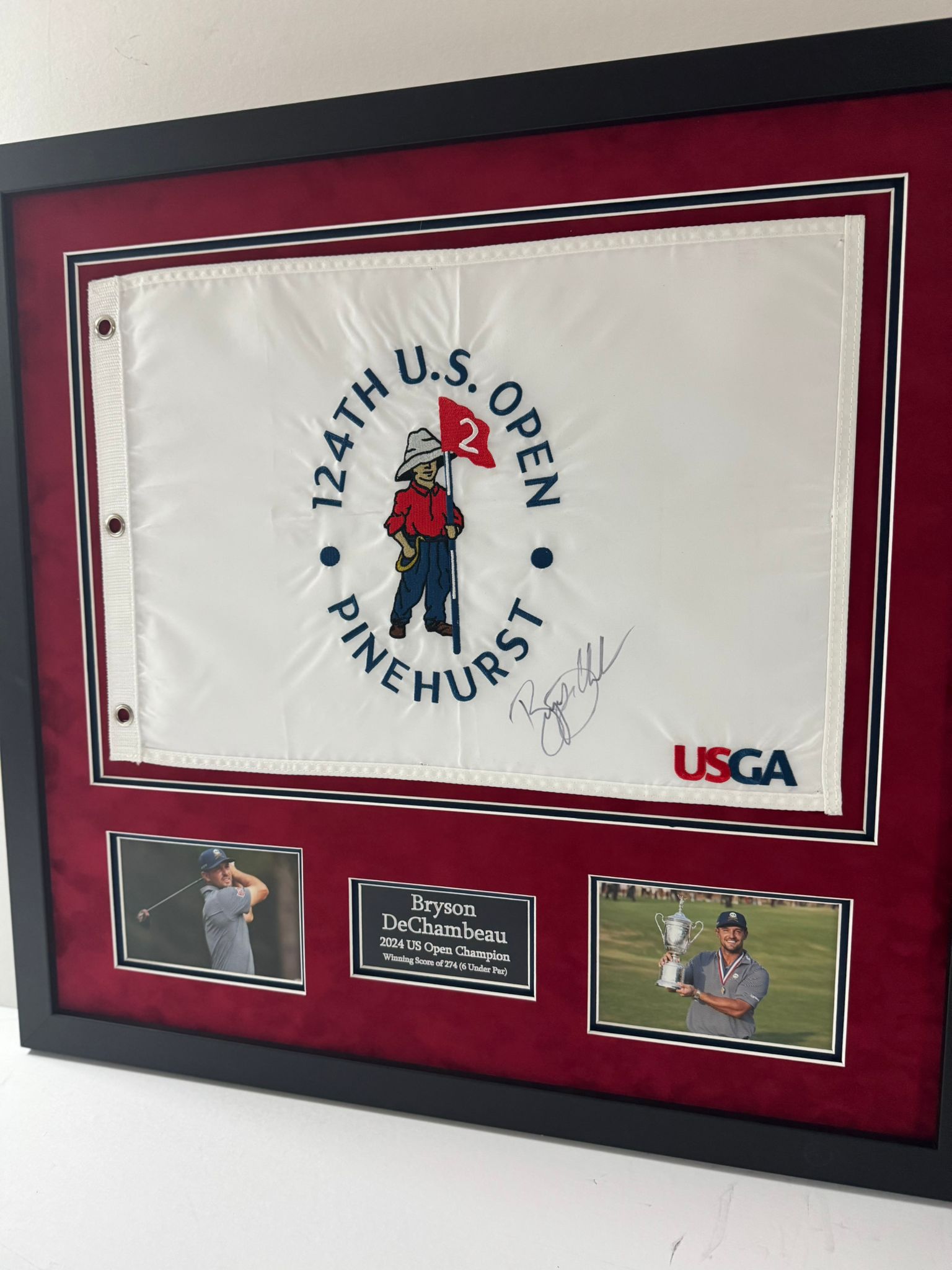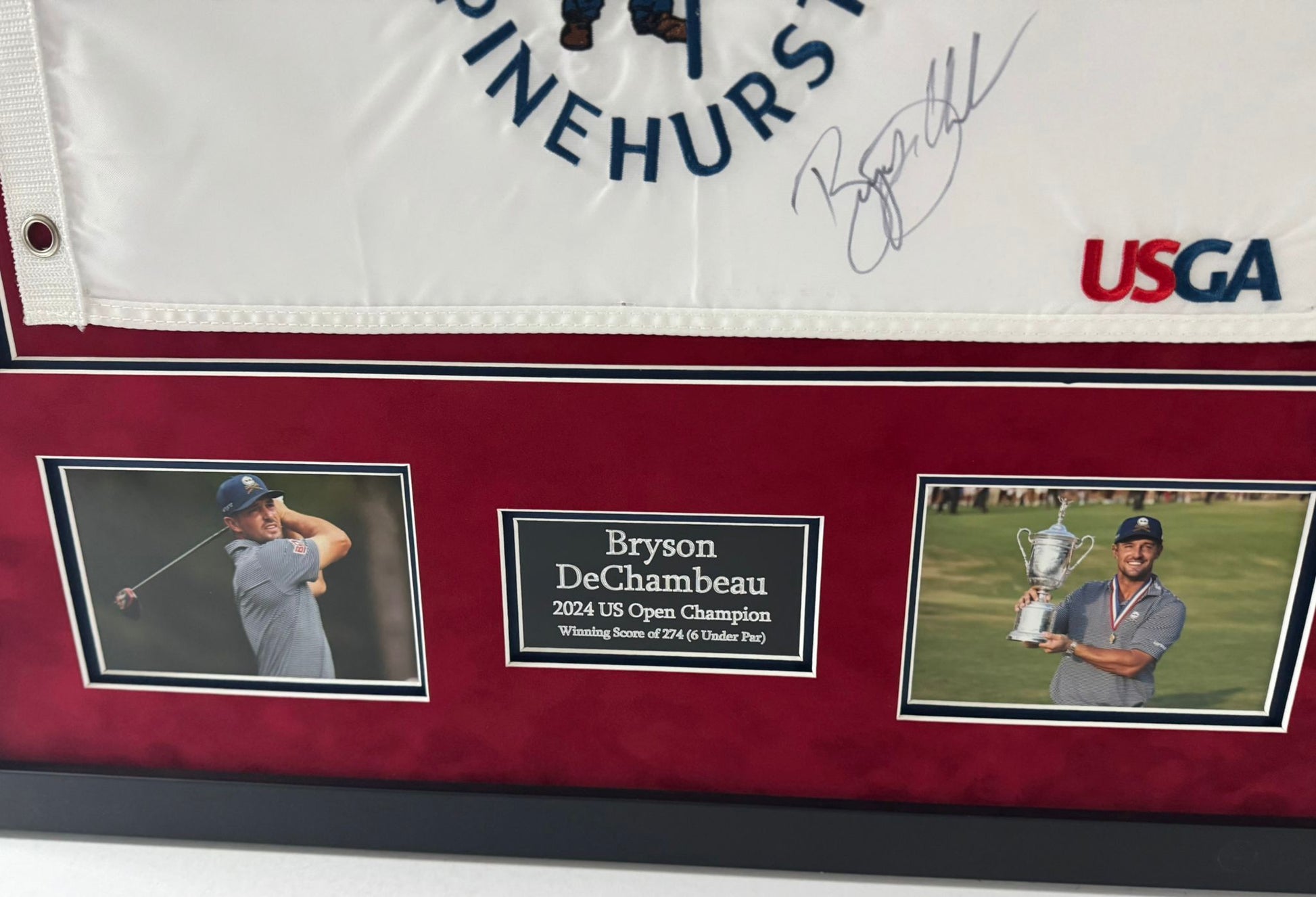 124th US Open Golf Flag Display Signed by Winner Bryson DeChambeau + Dealer COA