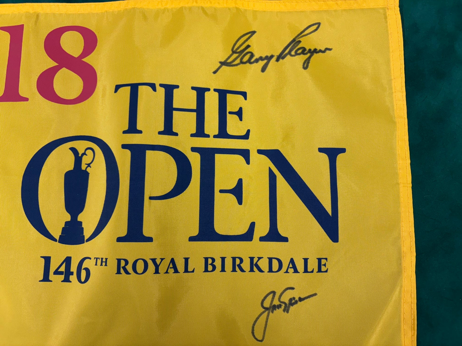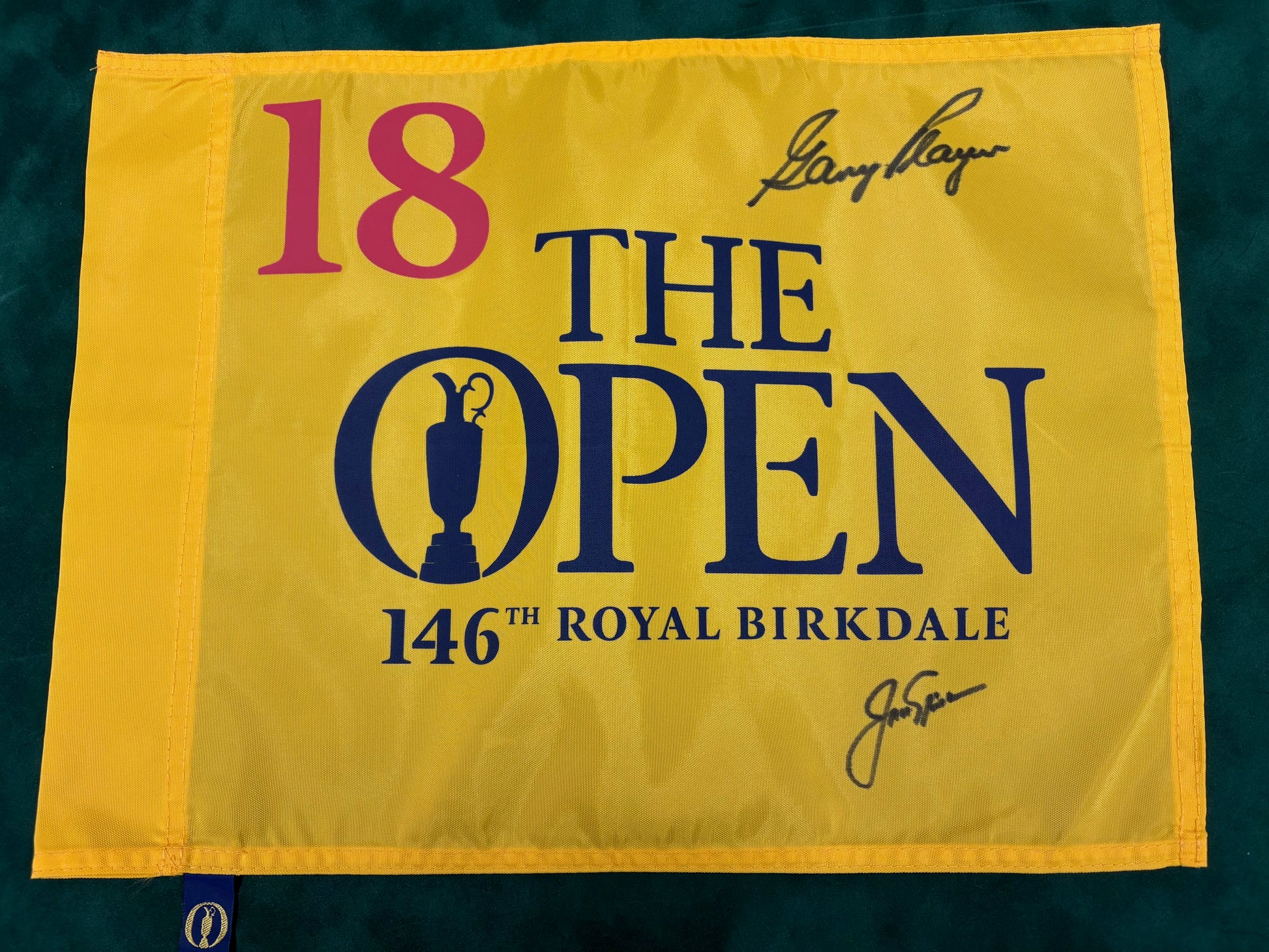 146th Open at Royal Birkdale Golf Flag Signed by Gary Player & Jack Nicklaus + Dealer COA