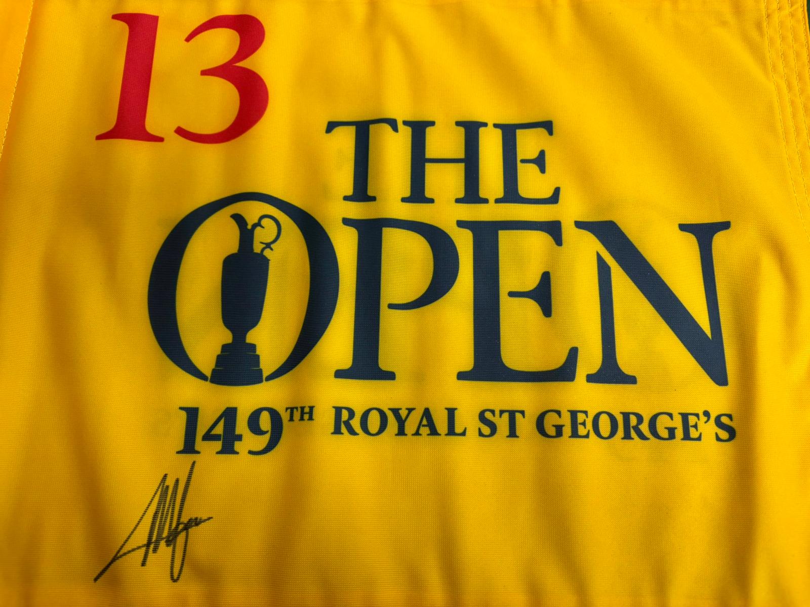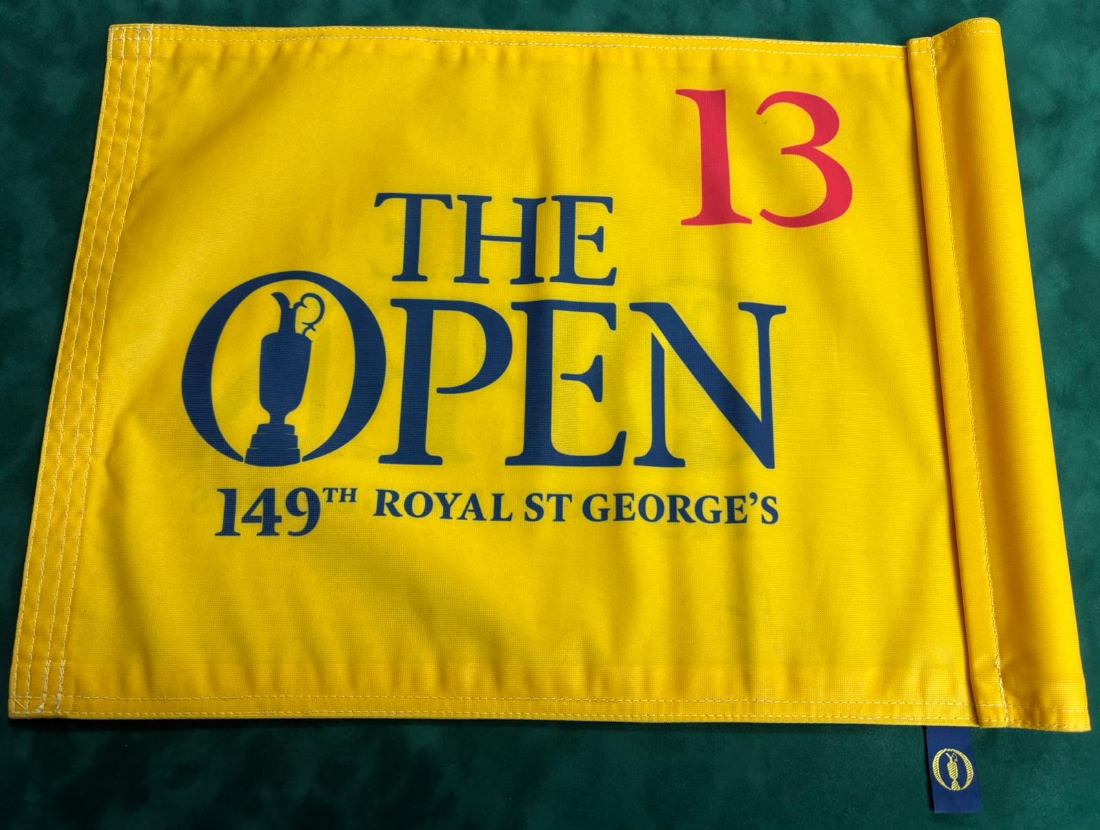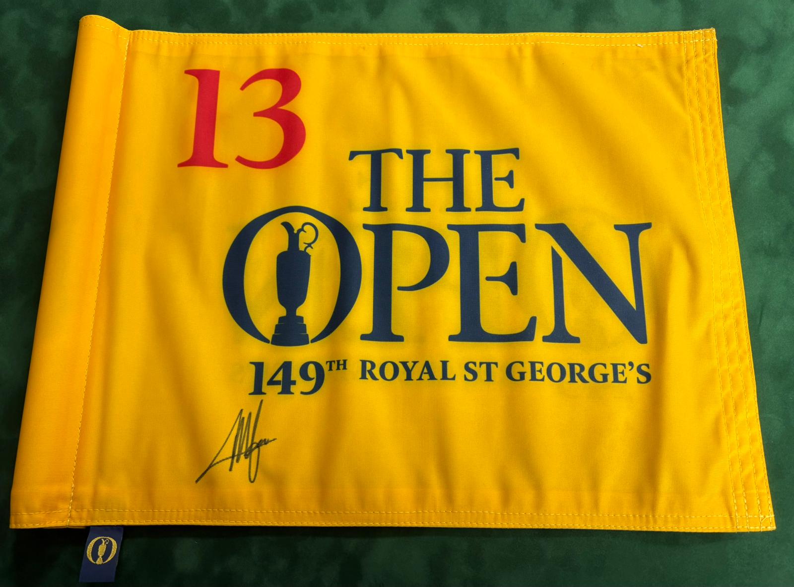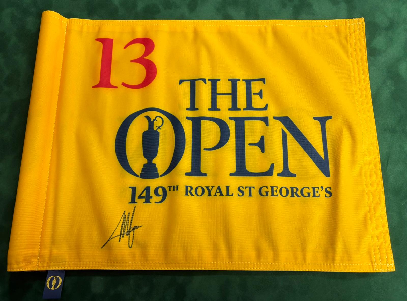 149th Open at Royal St George's 13th Hole Course Used Golf Flag Signed by Winner Collin Morikawa + COA
