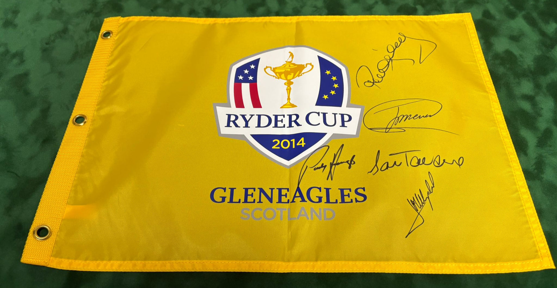 2014 Ryder Cup at Gleneagles Golf Pin Flag Signed by Team Europe Captain & 4x Vice Captains + COA