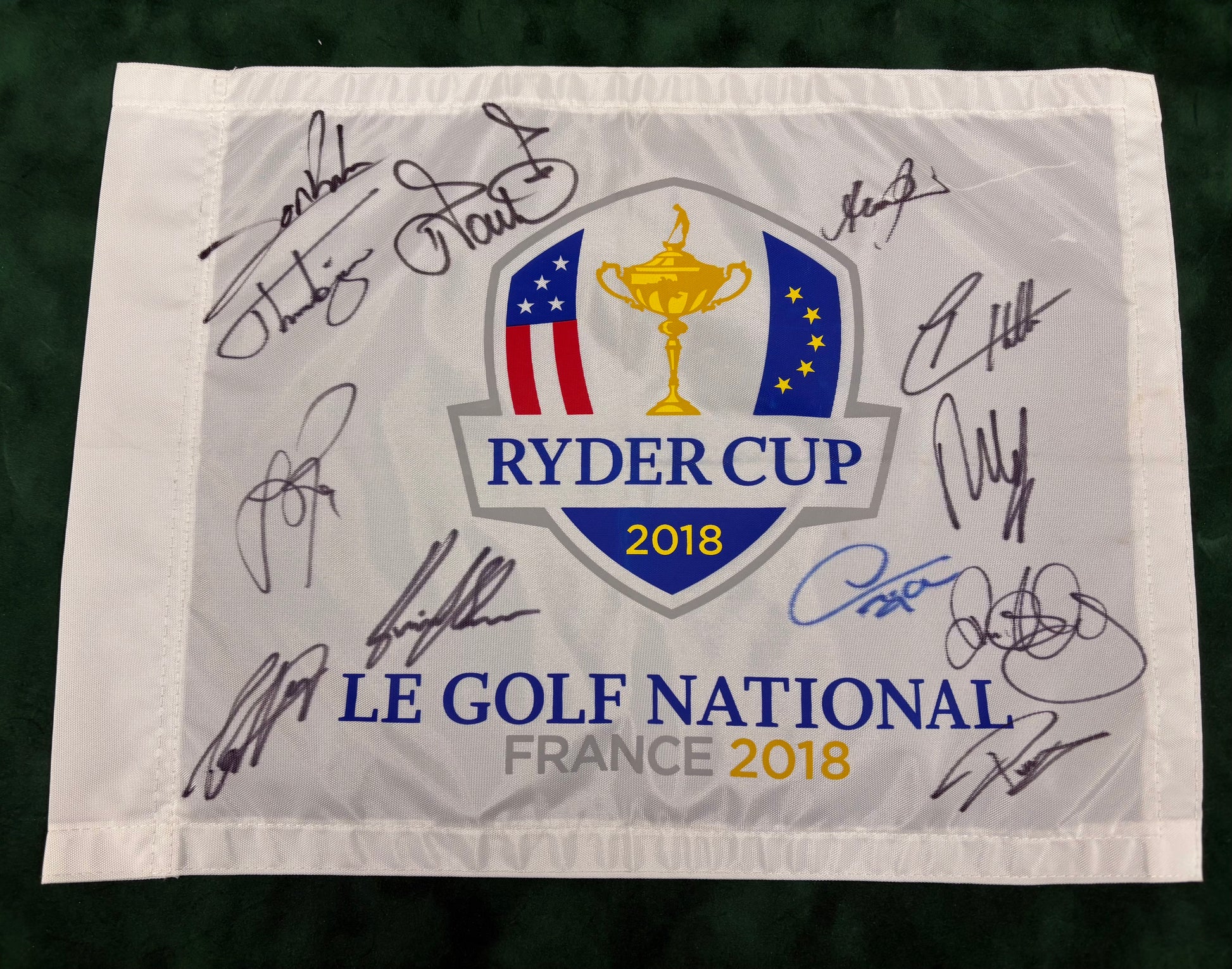 2018 Ryder Cup at Le Golf National Golf Pin Flag Signed by 12 of Team Europe + Cert
