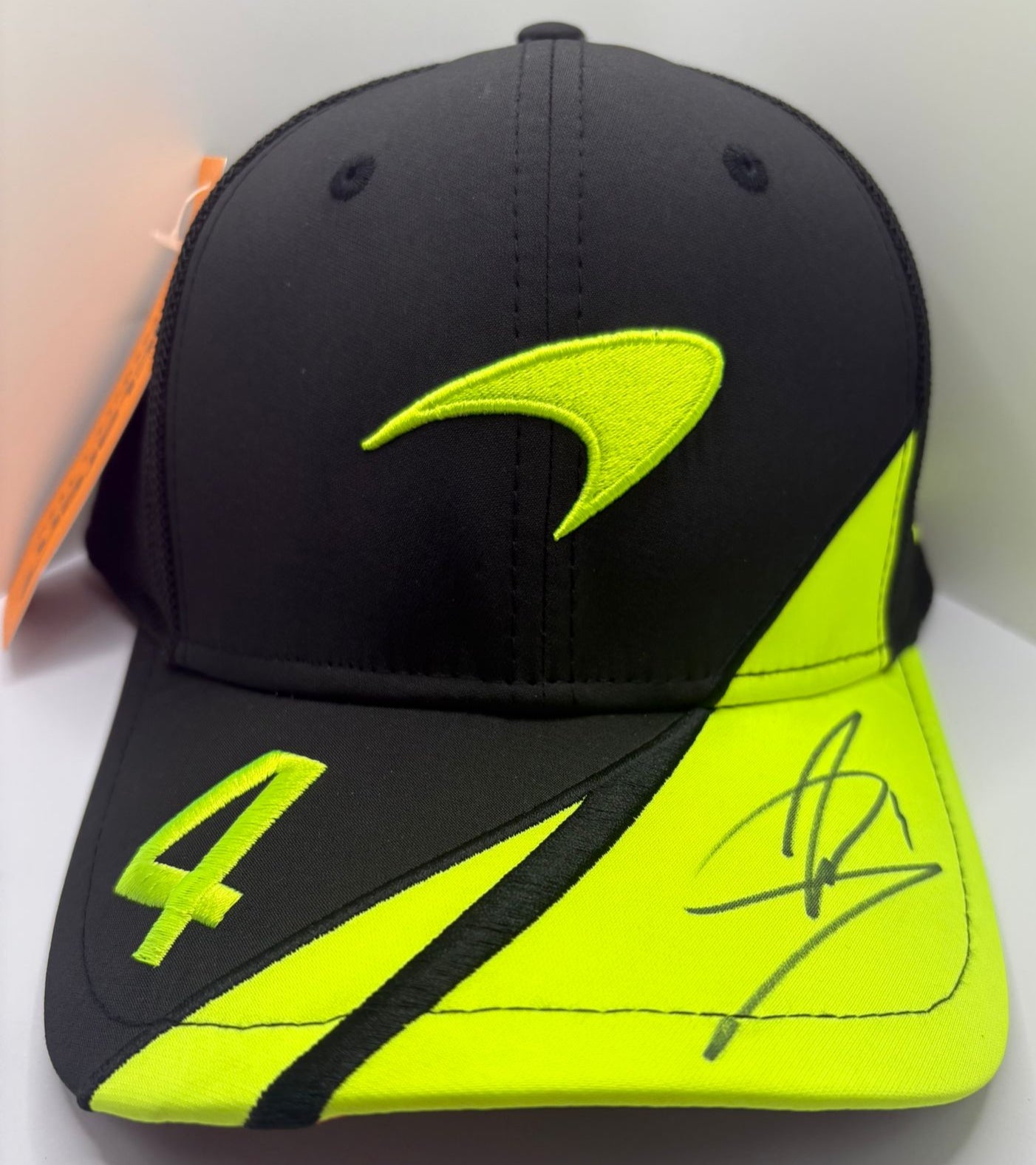 Celebrate the thrill of the 2025 British Grand Prix with this New Era McLaren 9FIFTY cap, signed by the winner himself, Lando Norris. Perfect for fans and collectors, this stylish cap not only shows off your support but also comes with a Certificate of Authenticity to prove its genuine autograph. Whether you're at the track or watching from home, wear a piece of racing history with pride!