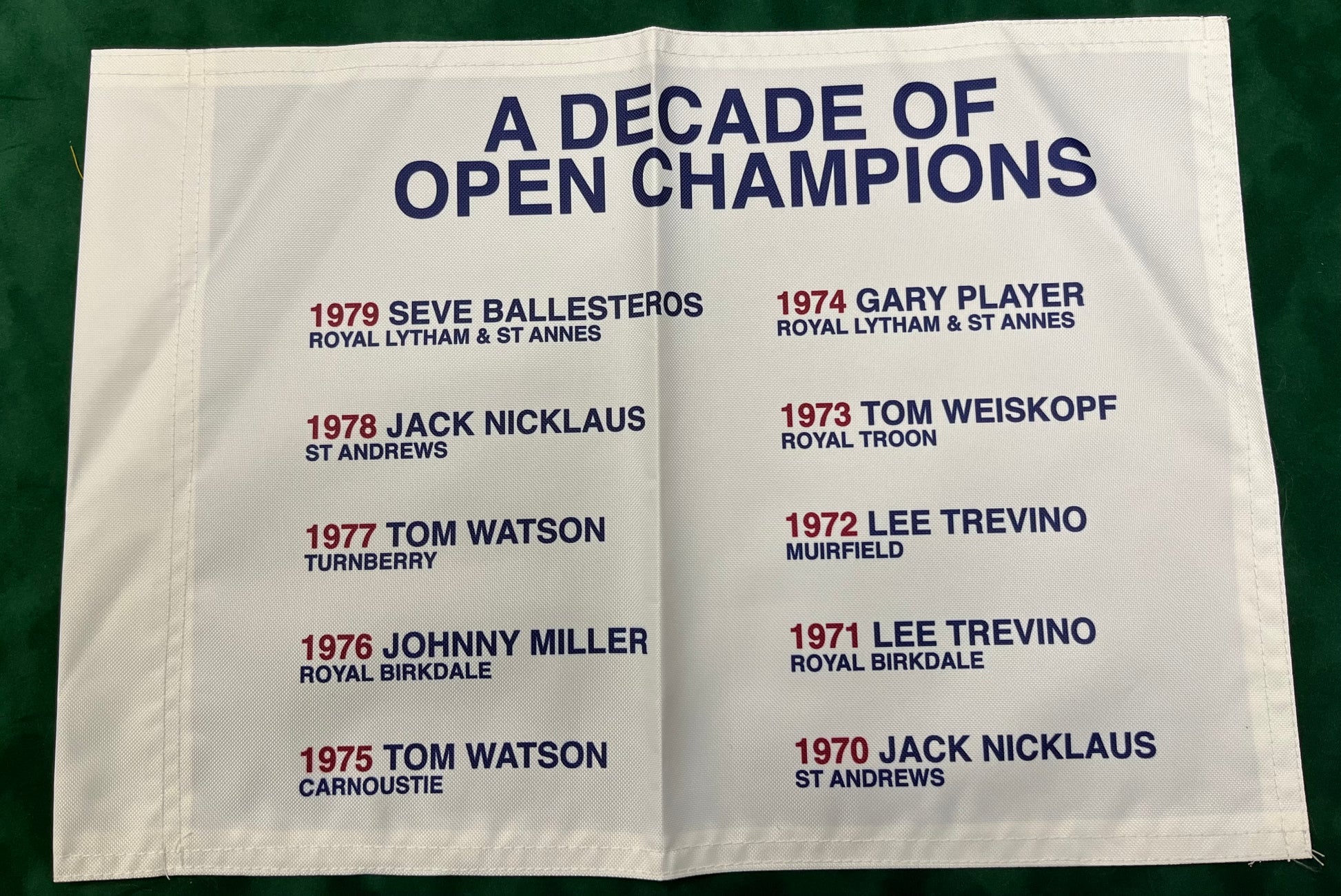 A Decade of Open Champions (1970-1979) Unsigned Golf Flag (White)