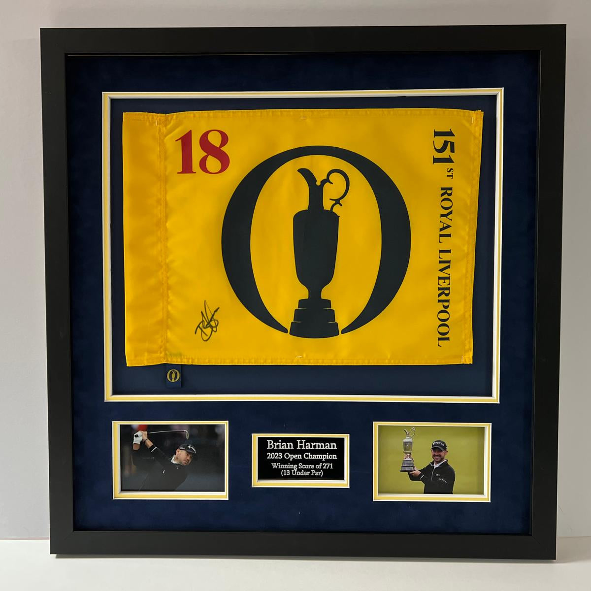 Brian Harman 151st Open @ Royal Liverpool Winner Signed Golf Flag Display + COA