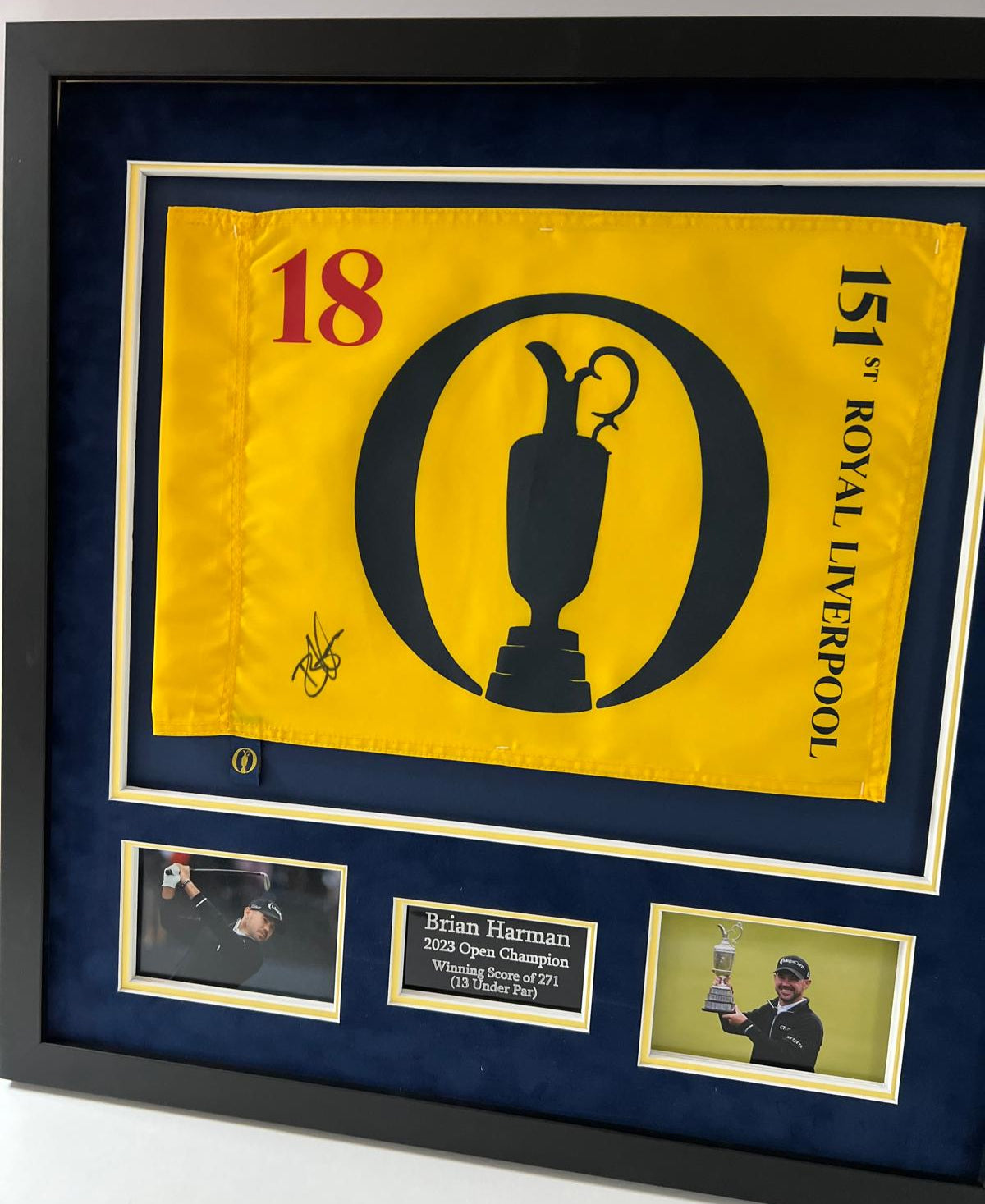 Celebrate Brian Harman’s incredible victory at the 151st Open at Royal Liverpool with this signed golf flag display! Perfect for any golf fan, it features Harman’s authentic signature and comes with a Certificate of Authenticity. A fantastic way to bring a piece of golf history into your home or office, this display captures the excitement of a memorable win in style. Whether you’re a collector or just love the game, it’s a must-have keepsake that sparks great conversations.