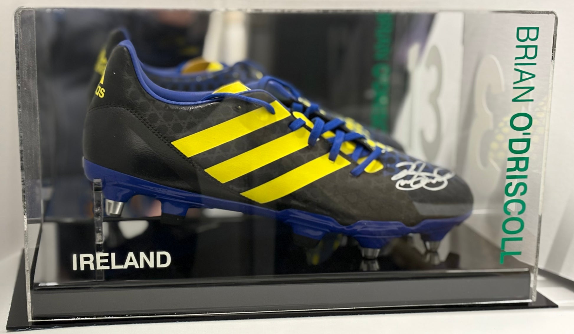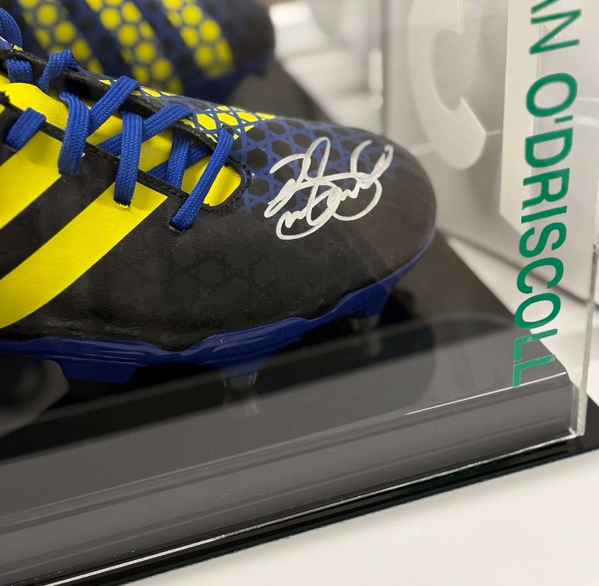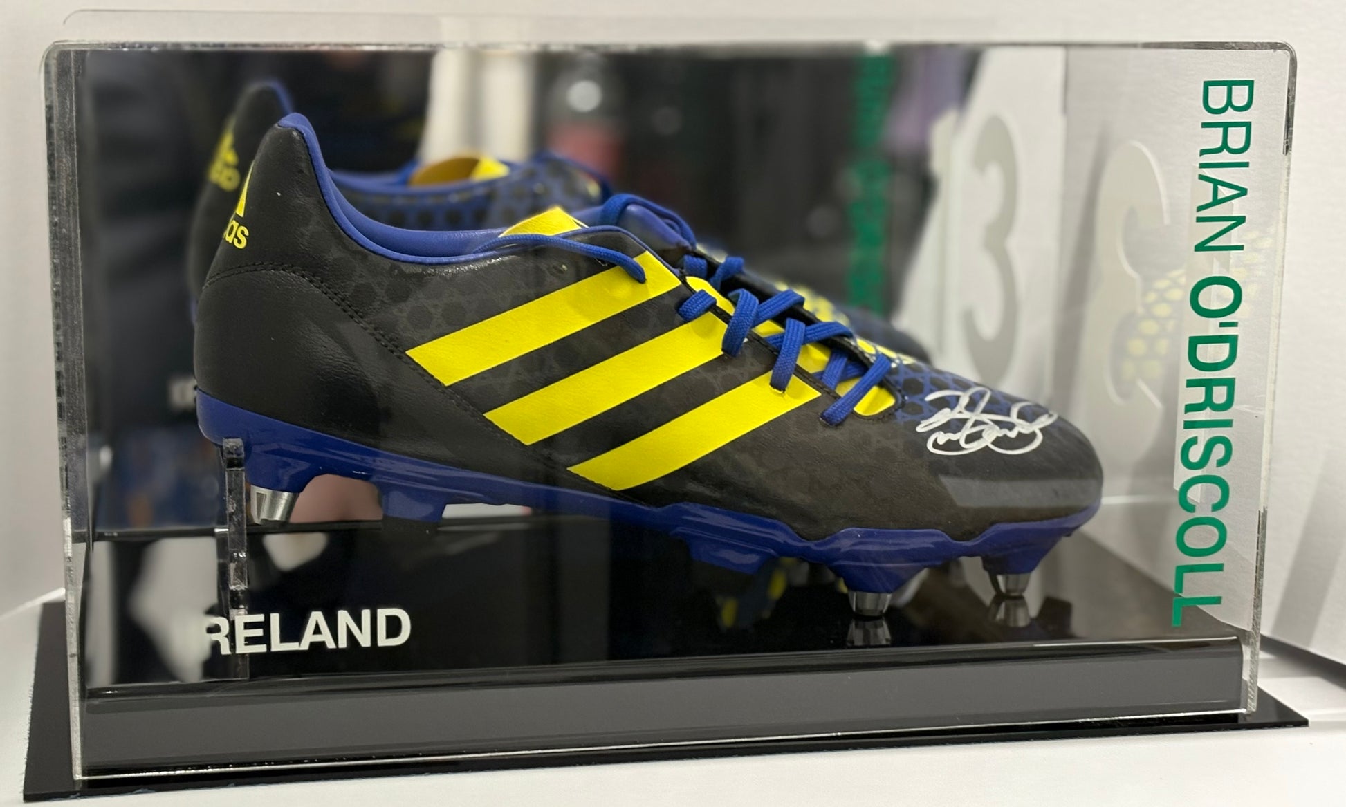 Brian O'Driscoll Signed Black & Yellow Adidas Rugby Boot In Acrylic Case with COA