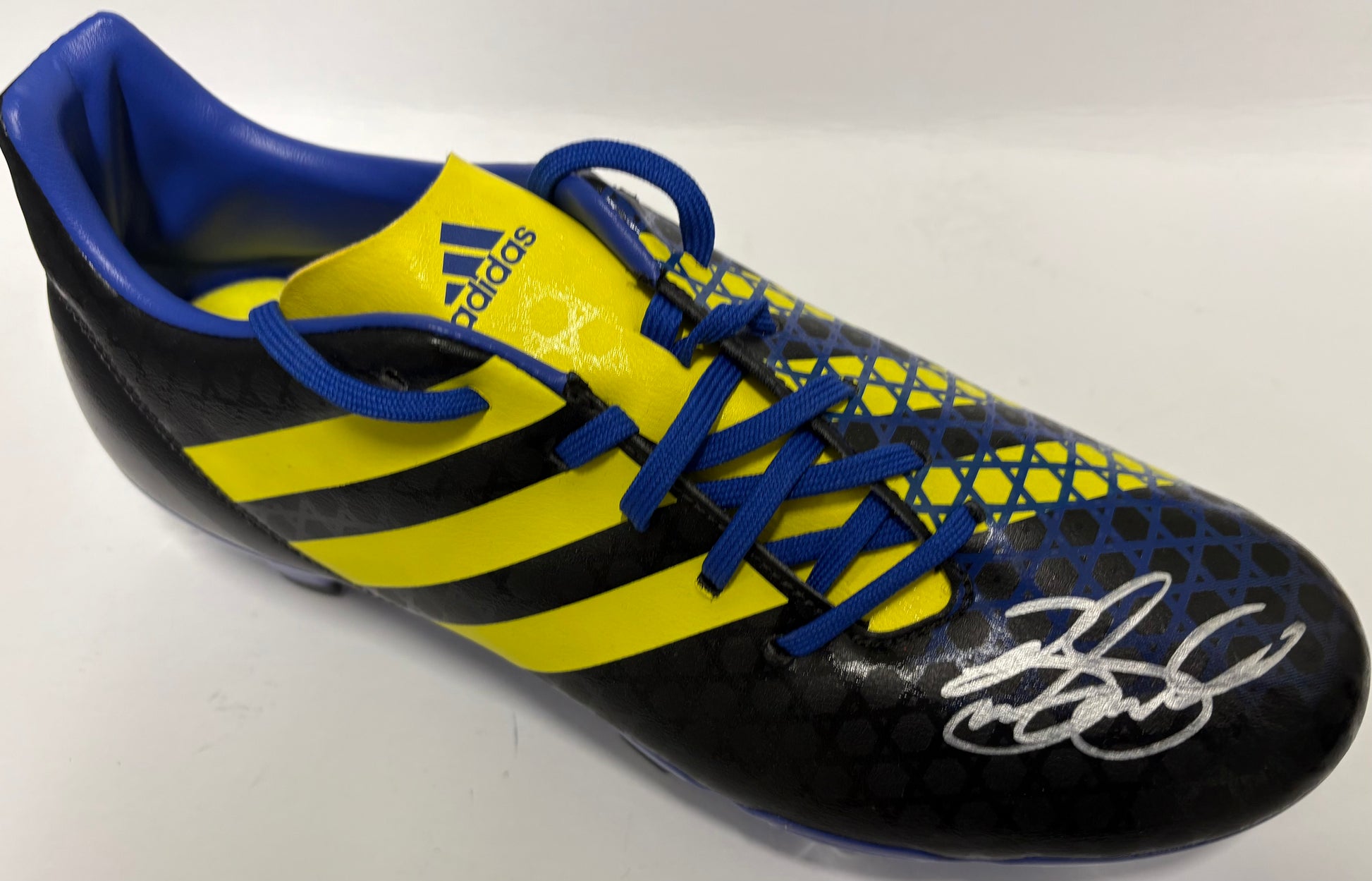 Score a try with this one-of-a-kind Brian O'Driscoll Signed Rugby Boot! Perfect for fans of the Irish rugby legend, this black and yellow Adidas boot comes in a sleek acrylic case with a Certificate of Authenticity. Add this piece to your collection and showcase your love for the former professional Rugby player.