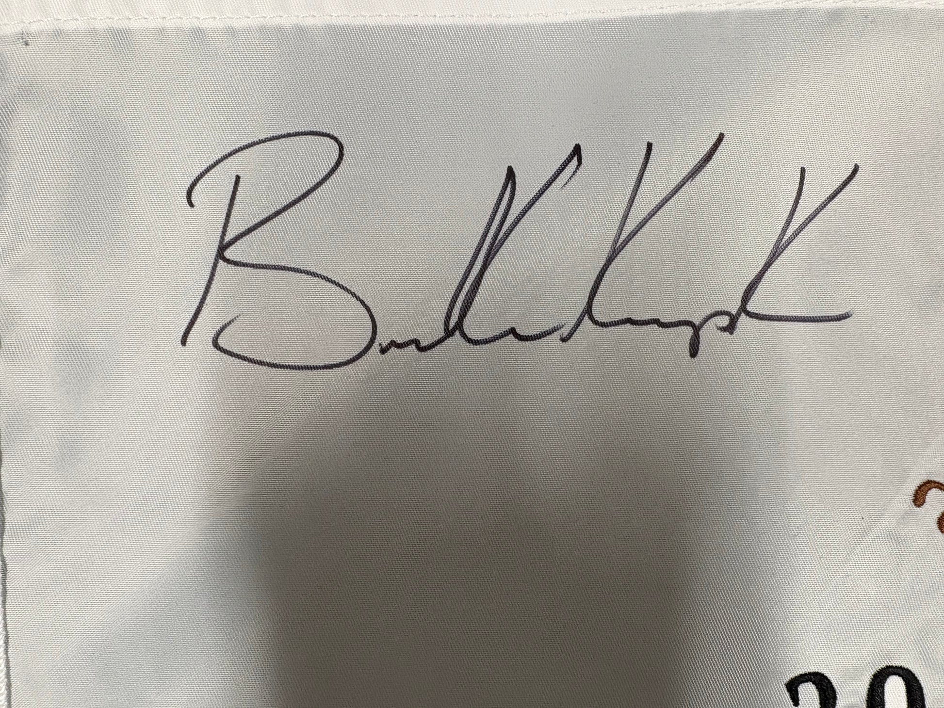 This authentic 2019 PGA Championship flag signed by Winner Brooks Koepka is a must-have for any golf enthusiast. The signature is accompanied by a dealer COA, guaranteeing its authenticity. Add this unique piece to your collection and showcase your admiration for one of the top golfers in the world.