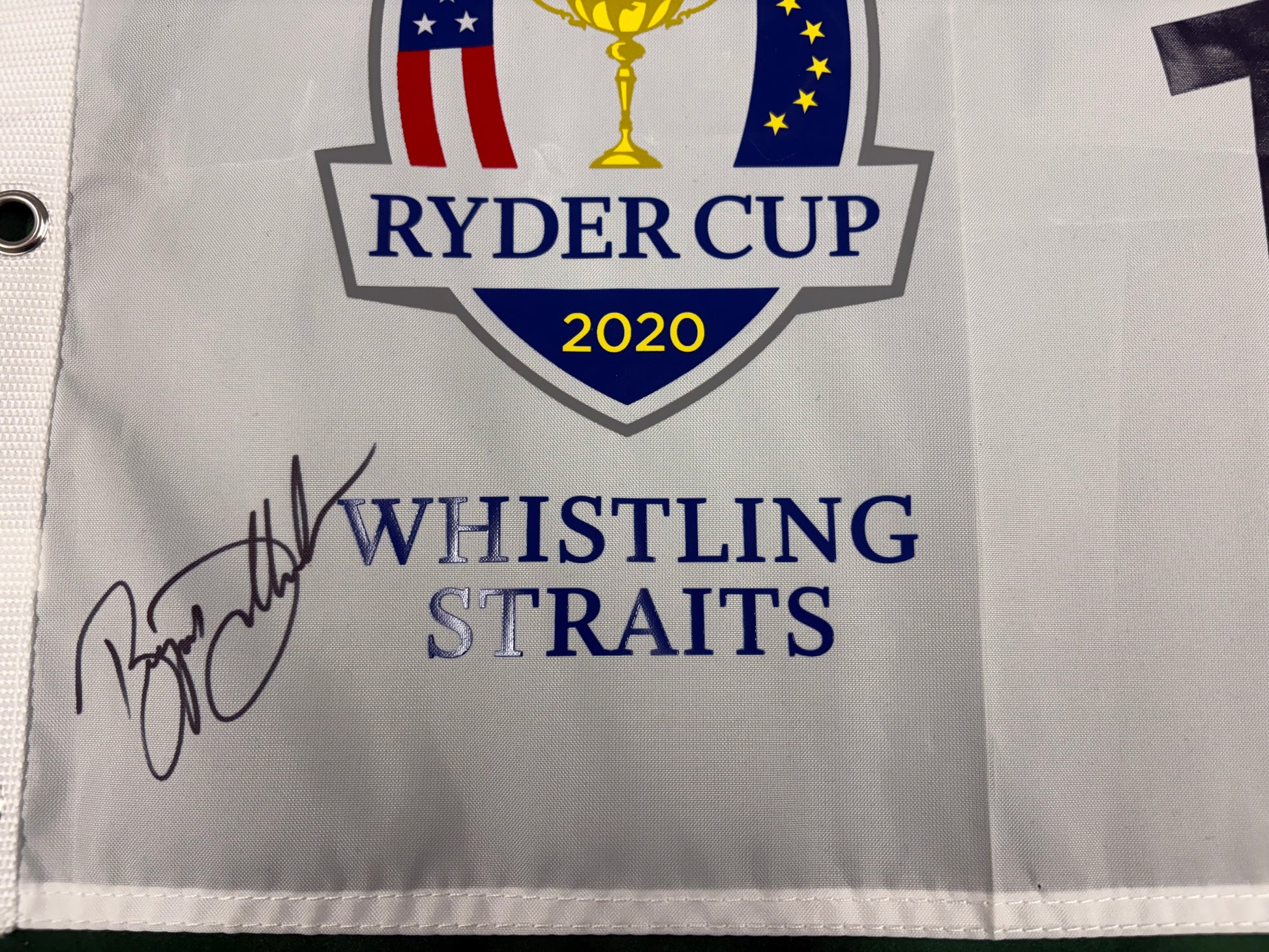 Bryson DeChambeau Signed 2020 Ryder Cup at Whistling Straits 18th Golf Flag + Cert