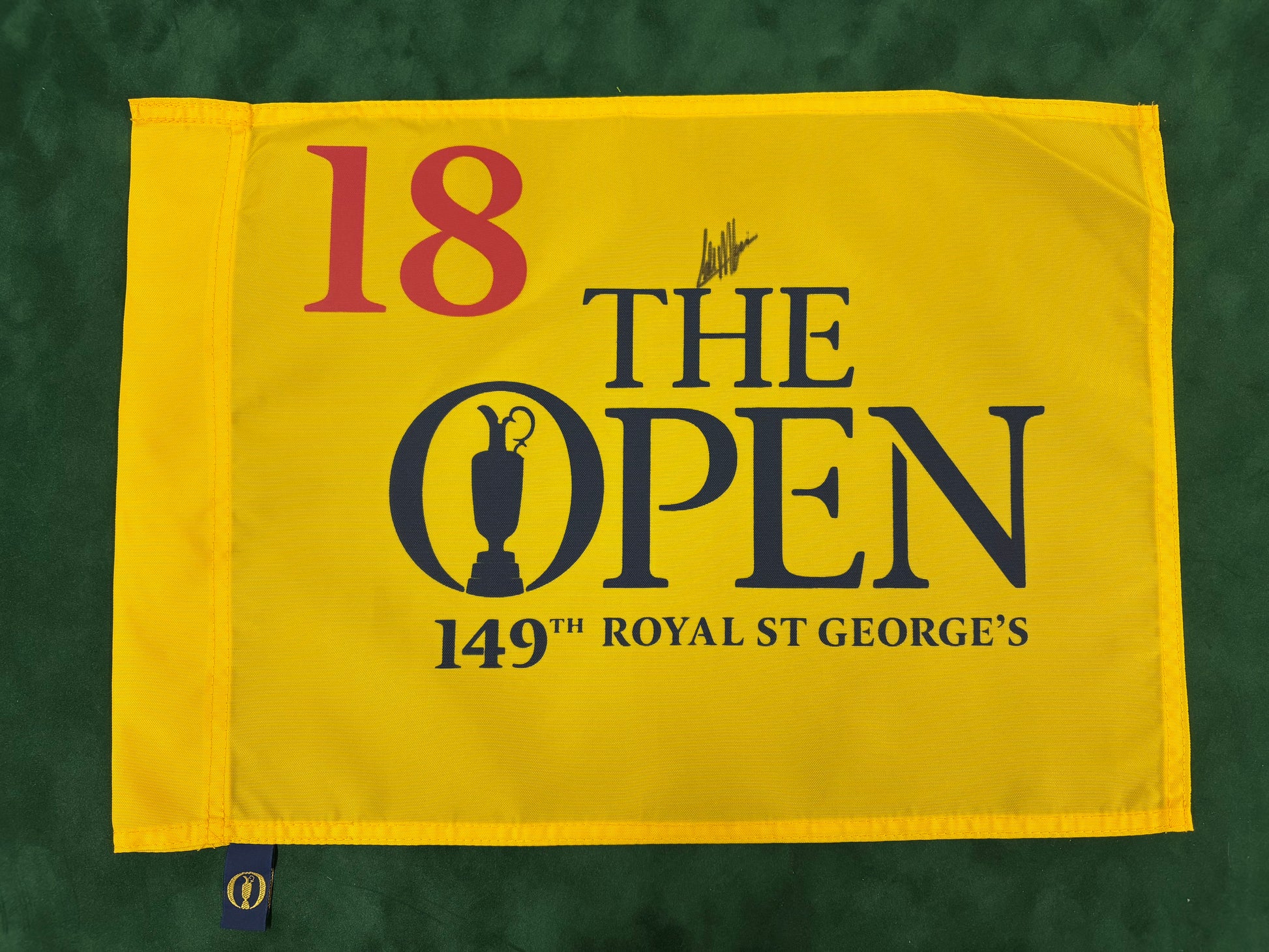 Collin Morikawa Winner Signed 149th Open at Royal St Georges Golf Pin Flag + Dealer COA