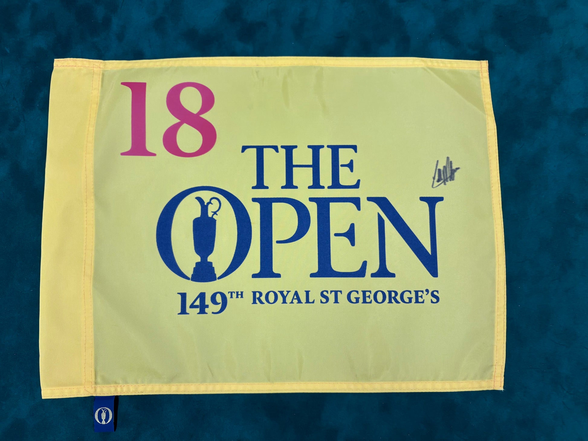 Collin Morikawa Winner Signed 149th Open at Royal St Georges Golf Pin Flag + Dealer COA