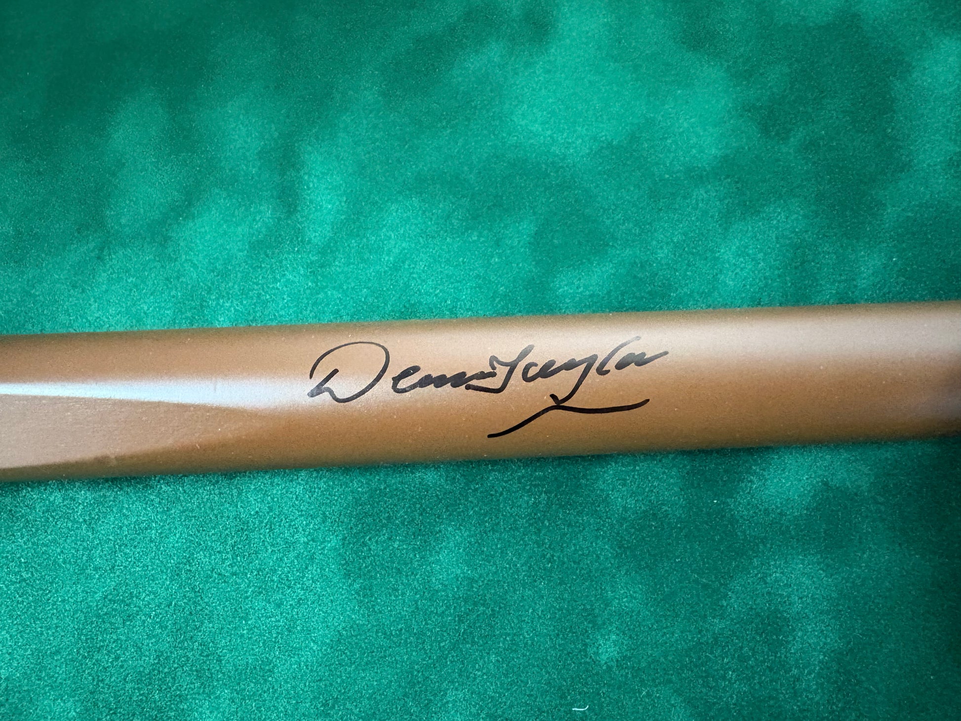 This Classic Brown Snooker Cue, signed by Dennis Taylor and accompanied by a Certificate of Authenticity, is the perfect addition to any snooker enthusiast's collection. In 1985, Dennis Taylor won the World Snooker Championship, solidifying his position as one of the best in the sport. Own a piece of snooker history with this high-quality cue.