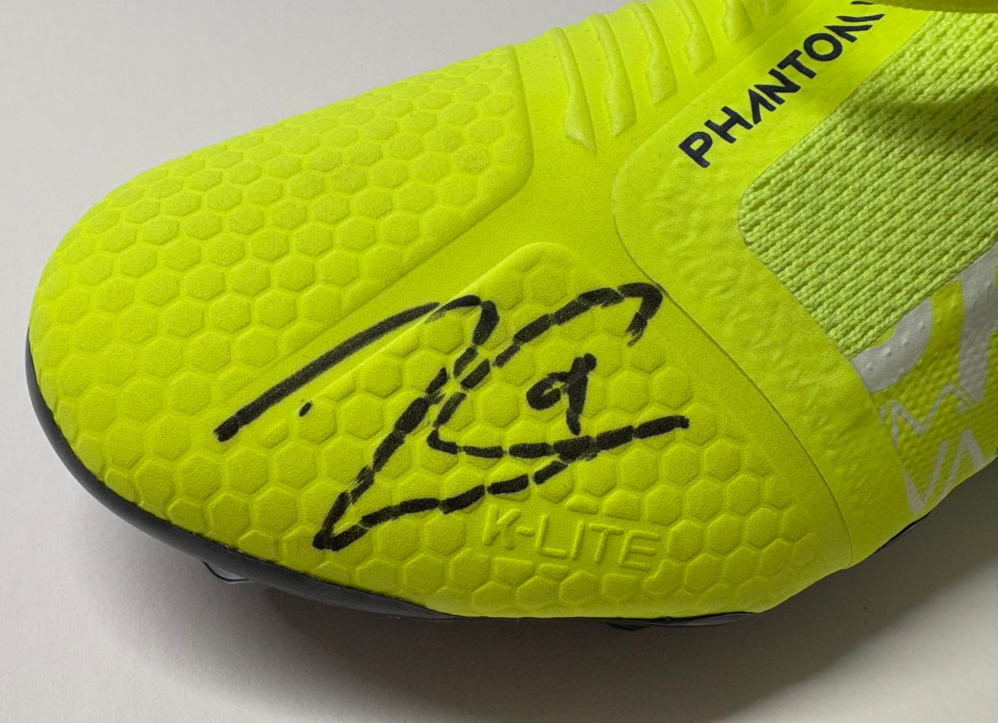 Score a goal with this unique Nike Phantom Venom Football Boot signed by Dominic Calvert-Lewin, the prolific striker who has made 1000 appearances (and still playing) for Everton FC! Comes with a Certificate of Authenticity.