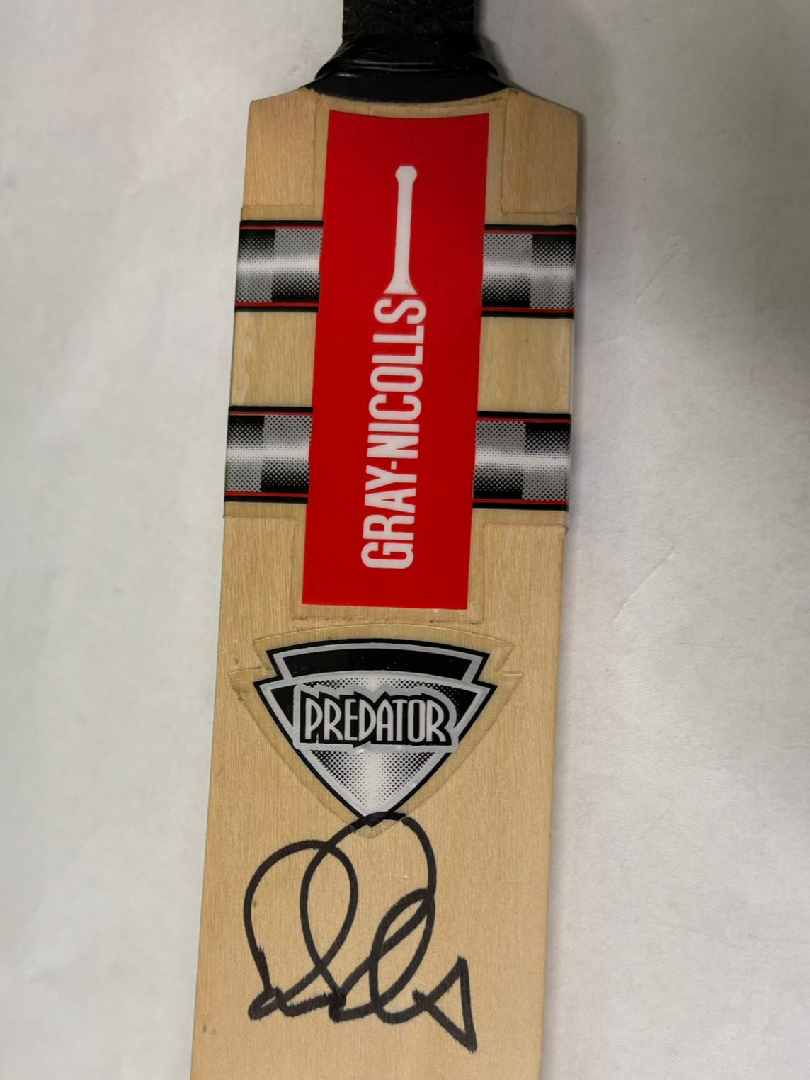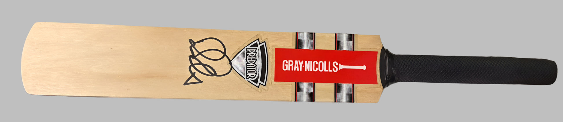 Celebrate cricket history with this mini cricket bat signed by England legend Graham Gooch. Perfect for fans and collectors, it comes with a dealer certificate of authenticity to guarantee its genuine signature. A charming keepsake that brings a touch of the wicket right into your home or office!