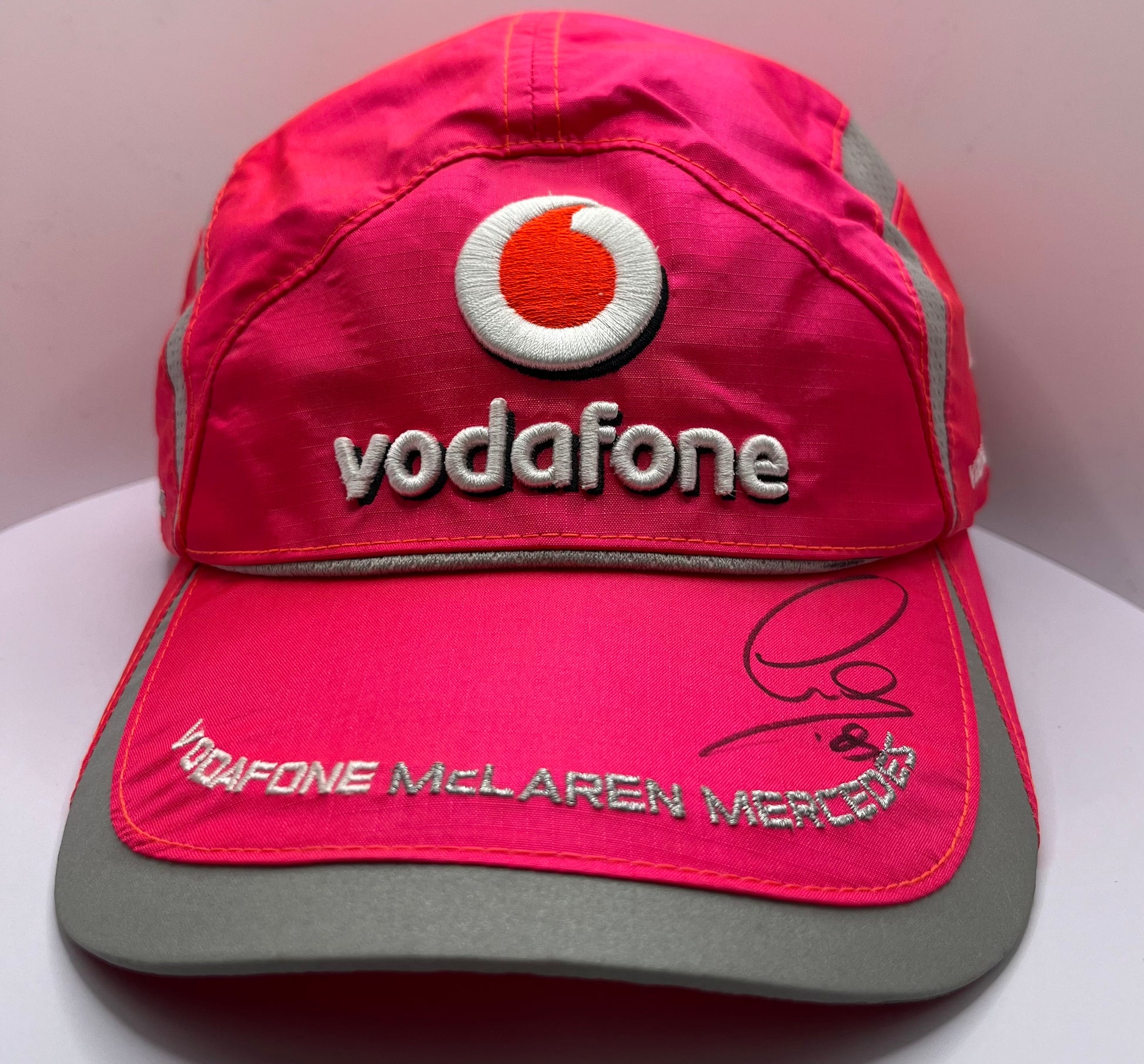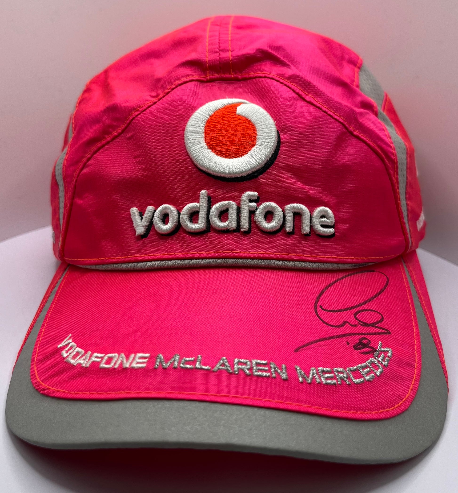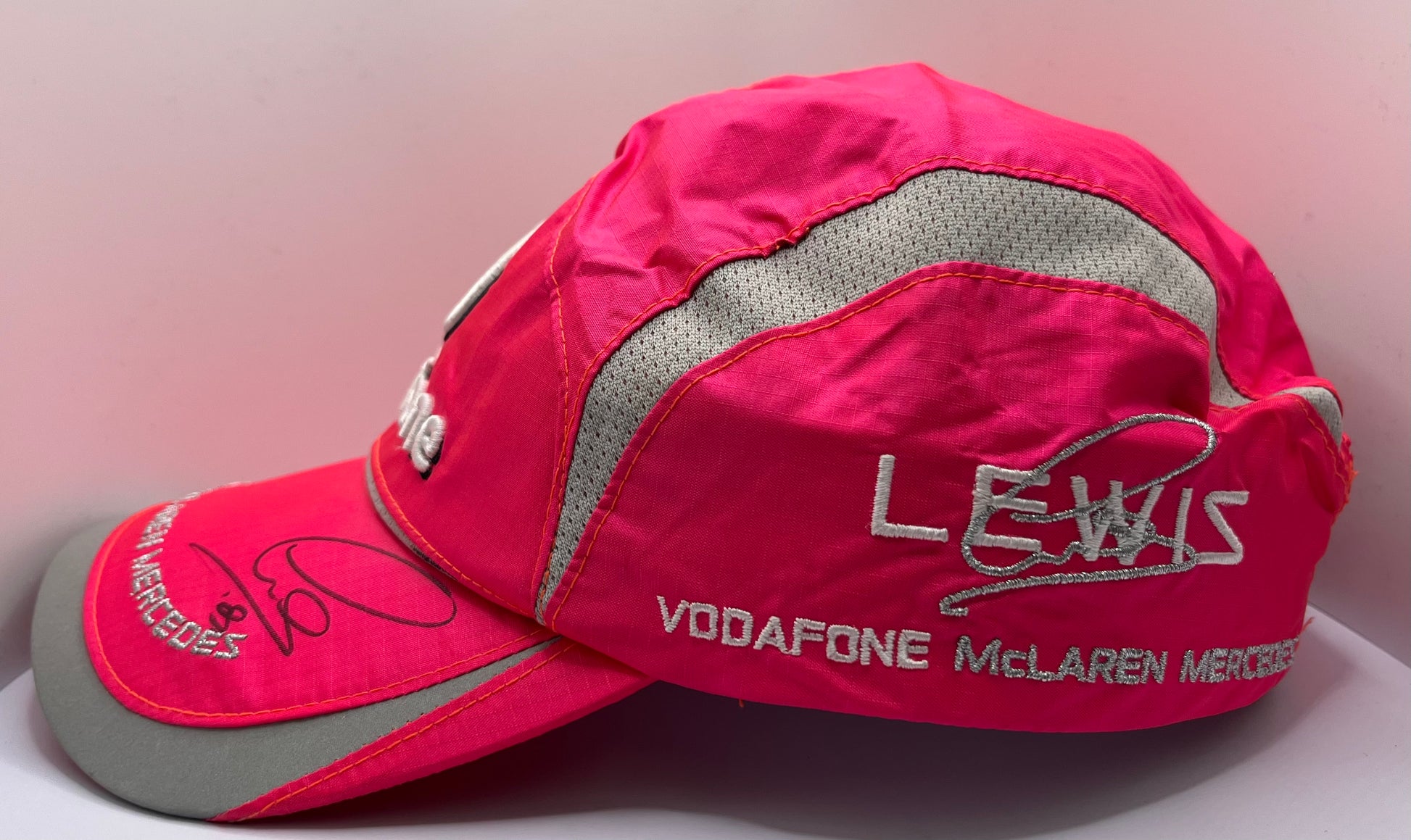 Formula One Legend Lewis Hamilton Signed Vodafone McLaren Mercedes Pink & Silver F1 Cap with COA
