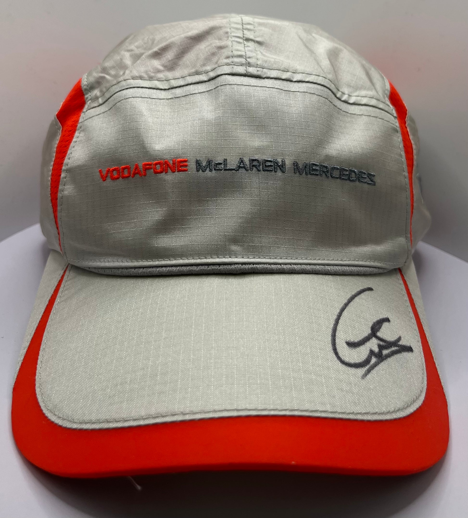 Formula One Legend Lewis Hamilton Signed Vodafone McLaren Mercedes Silver & Orange F1 Cap with COA