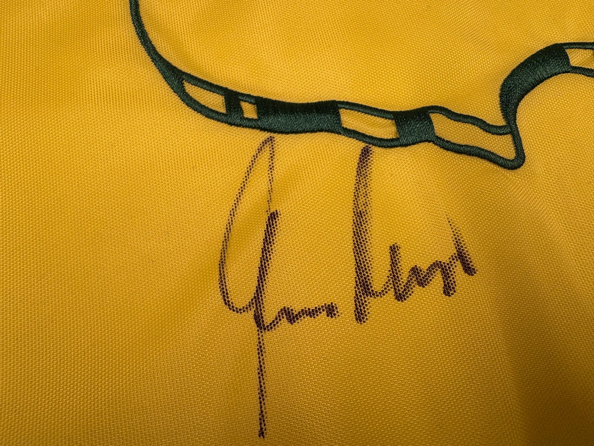 This authentic Masters golf flag has been personally signed by legendary golfer Gary Player. Display it proudly with the included dealer COA. Perfect for any golf enthusiast or collector looking to add a piece of history to their collection. Own a piece of golfing greatness with this undated Masters golf flag.