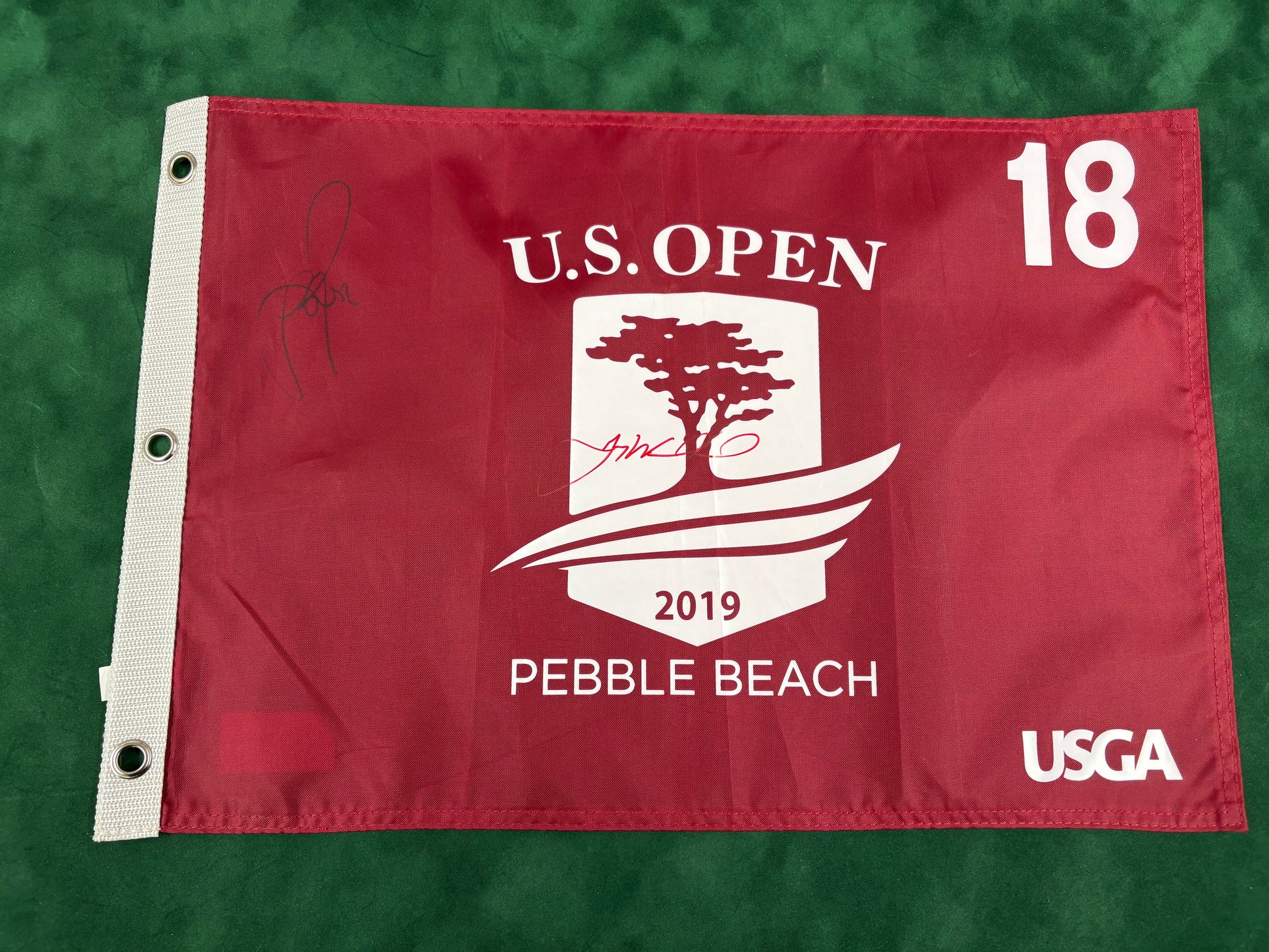 Gary Woodland 2019 & Justin Rose 2013 Winners Signed US Open Golf Flag + Cert