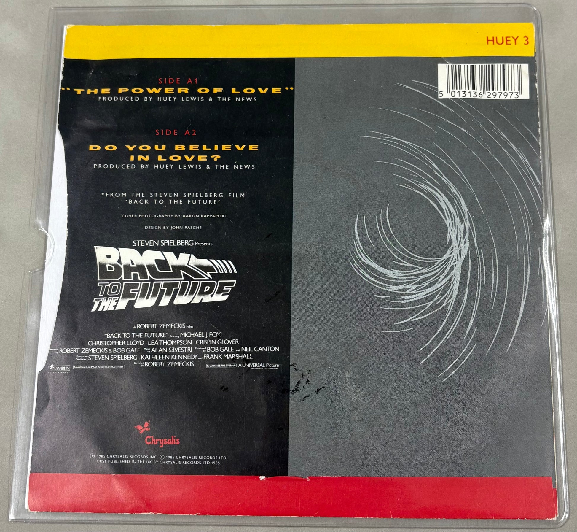 Huey Lewis Signed The Power of Love/Do you Believe in Love? 7'' Vinyl with COA (2)