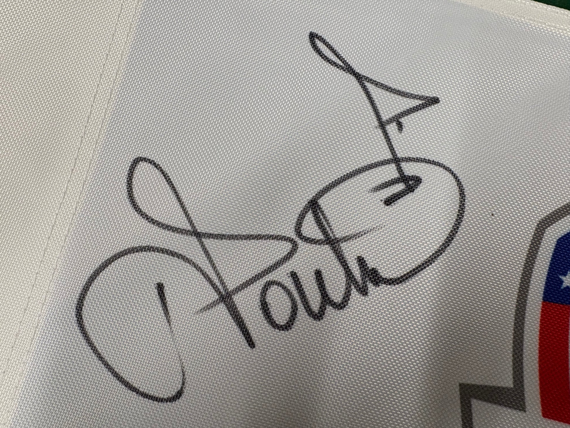 This Ian Poulter signed 2012 Ryder Cup at Medinah Country Club White Golf Flag is a must-have for any golf fan. This flag saw Team Europe's historic win over Team USA, claiming the victory with an incredible score of 14 1/2 to 13 1/2. Comes with a dealer COA for authenticity.