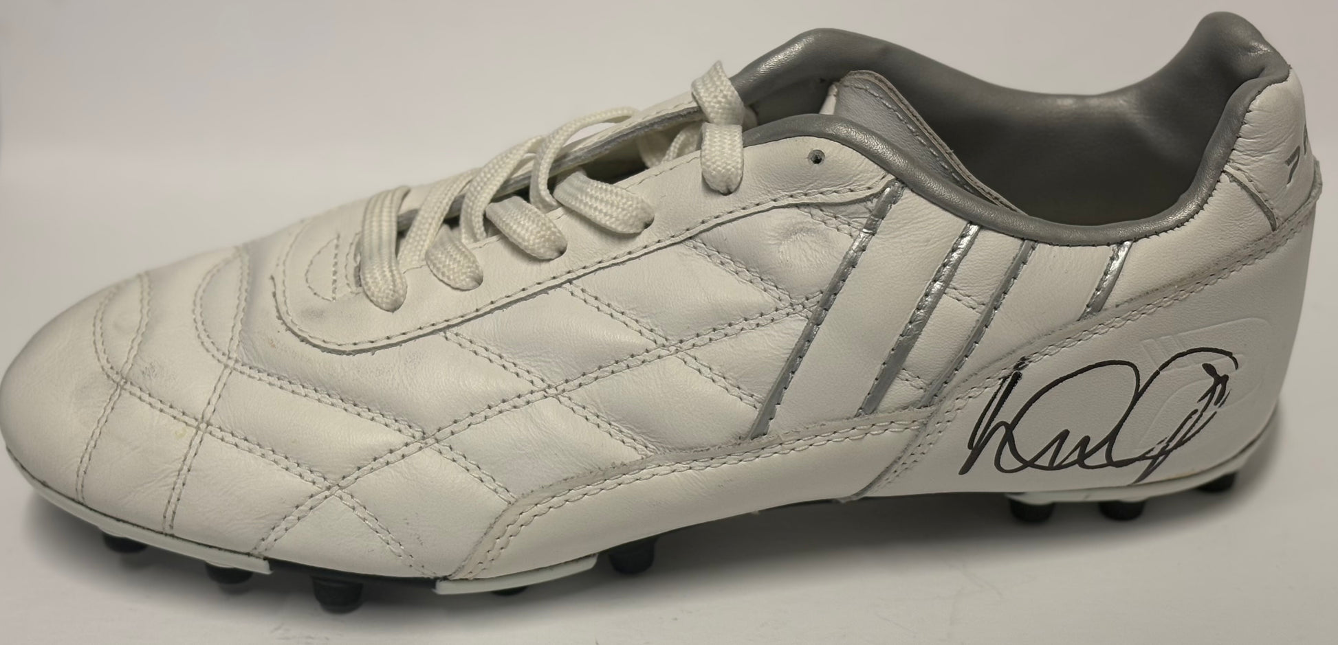 Score a goal with this signed white and silver Patrick football boot by Arsenal Legend, Ian Wright! Comes with a COA for authenticity. Get ready to bring some legendary energy to your game!