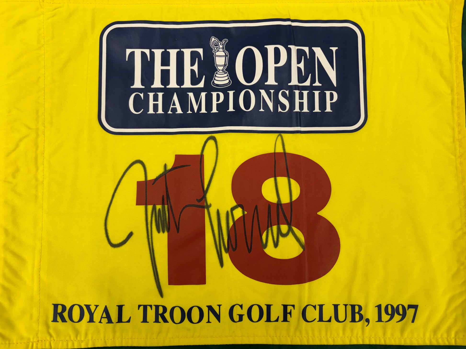 Justin Leonard Winner Signed 1997 Open at Royal Troon Course Used 18th Pin Flag +Cert
