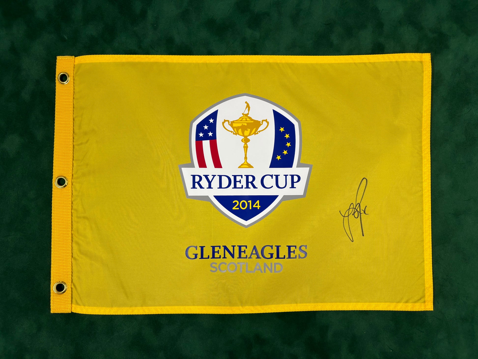 Justin Rose Signed 2014 Ryder Cup at Gleneagles Golf Flag + Dealer COA