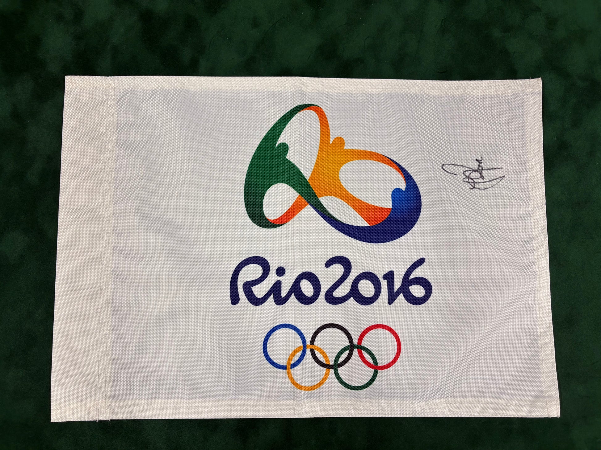 Justin Rose Signed Rio 2016 Olympic Golf Flag + Dealer COA
