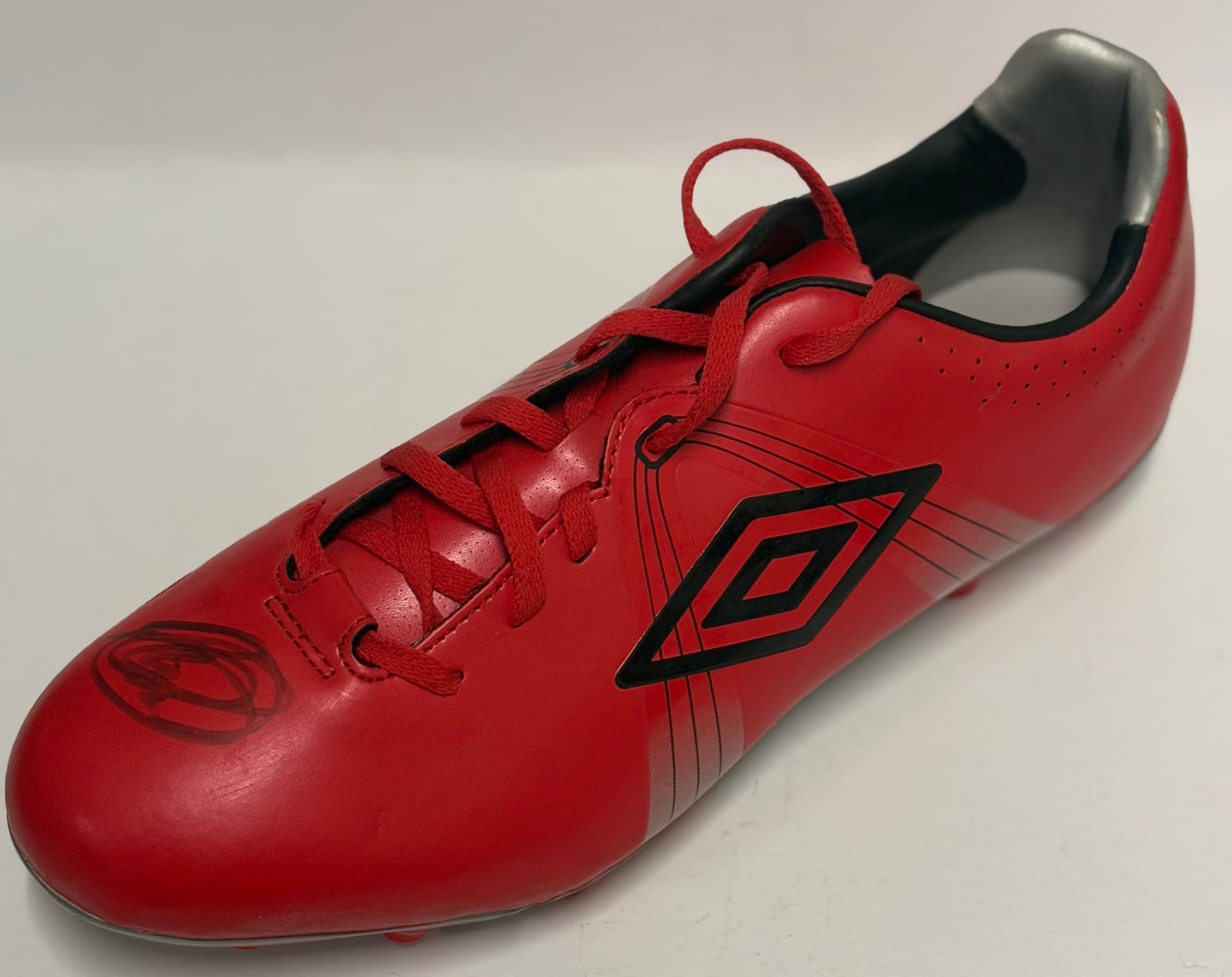 Support DEM Blades with this signed red Umbro football boot by Leon Clarke, who has made 88 appearances for Sheffield United. Comes with certificate of authenticity.