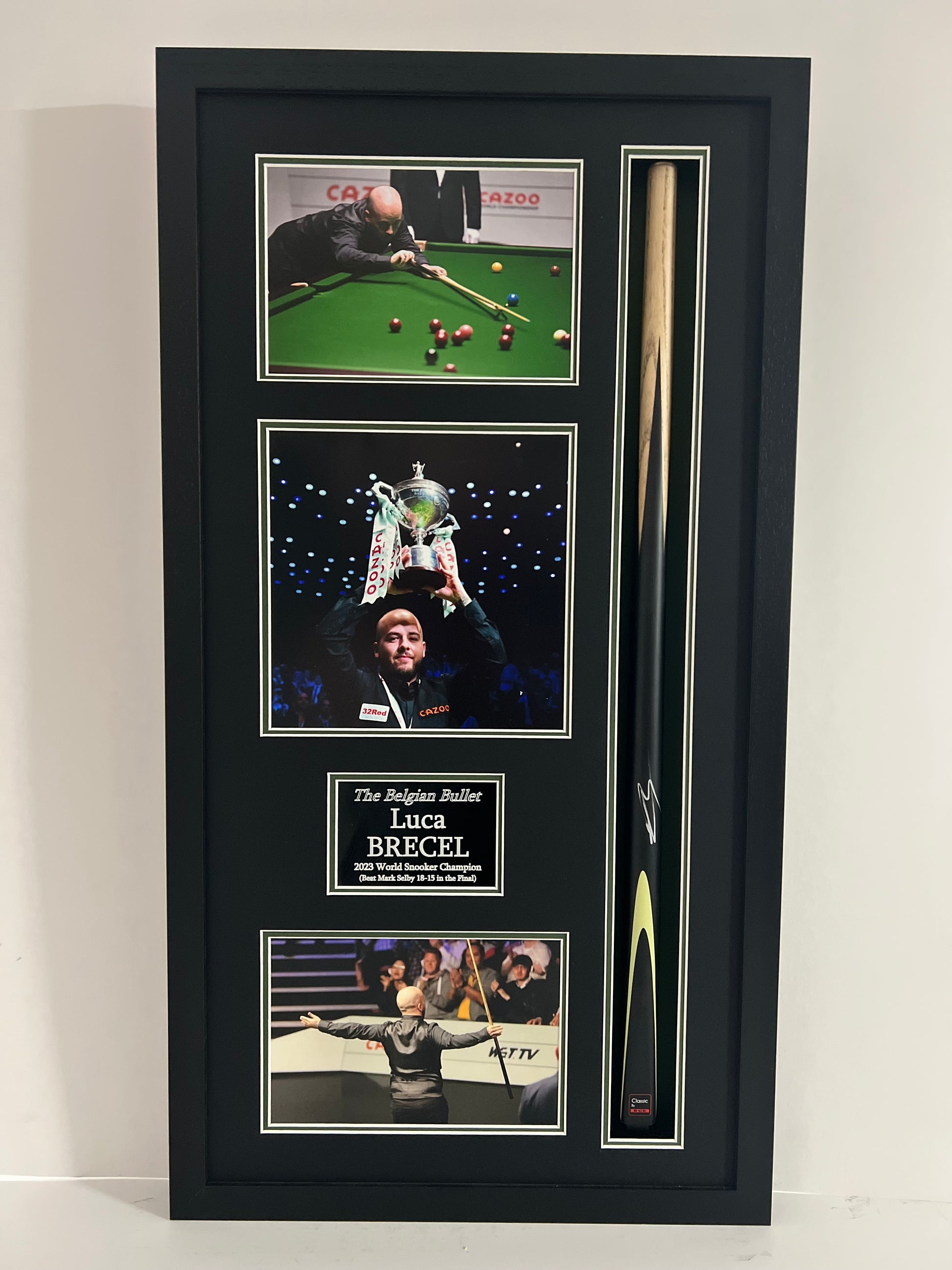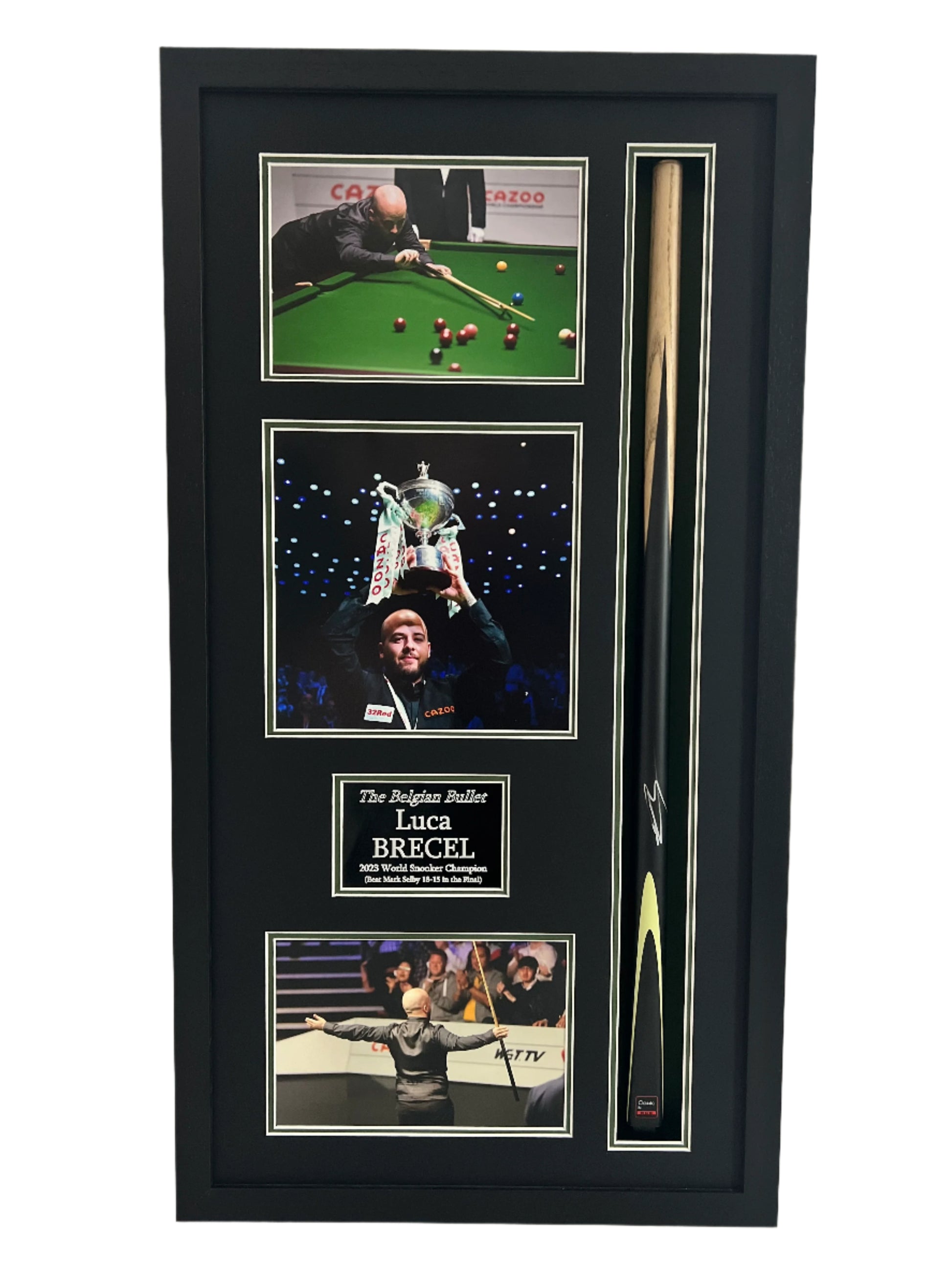 This framed signed snooker cue display, featuring former world champion Luca Brecel's signature, is a must-have for any snooker enthusiast. Crafted with premium materials and accompanied by a certificate of authenticity, this display showcases the talent and achievements of one of the best players in the world. Enhance your collection with this limited edition piece.