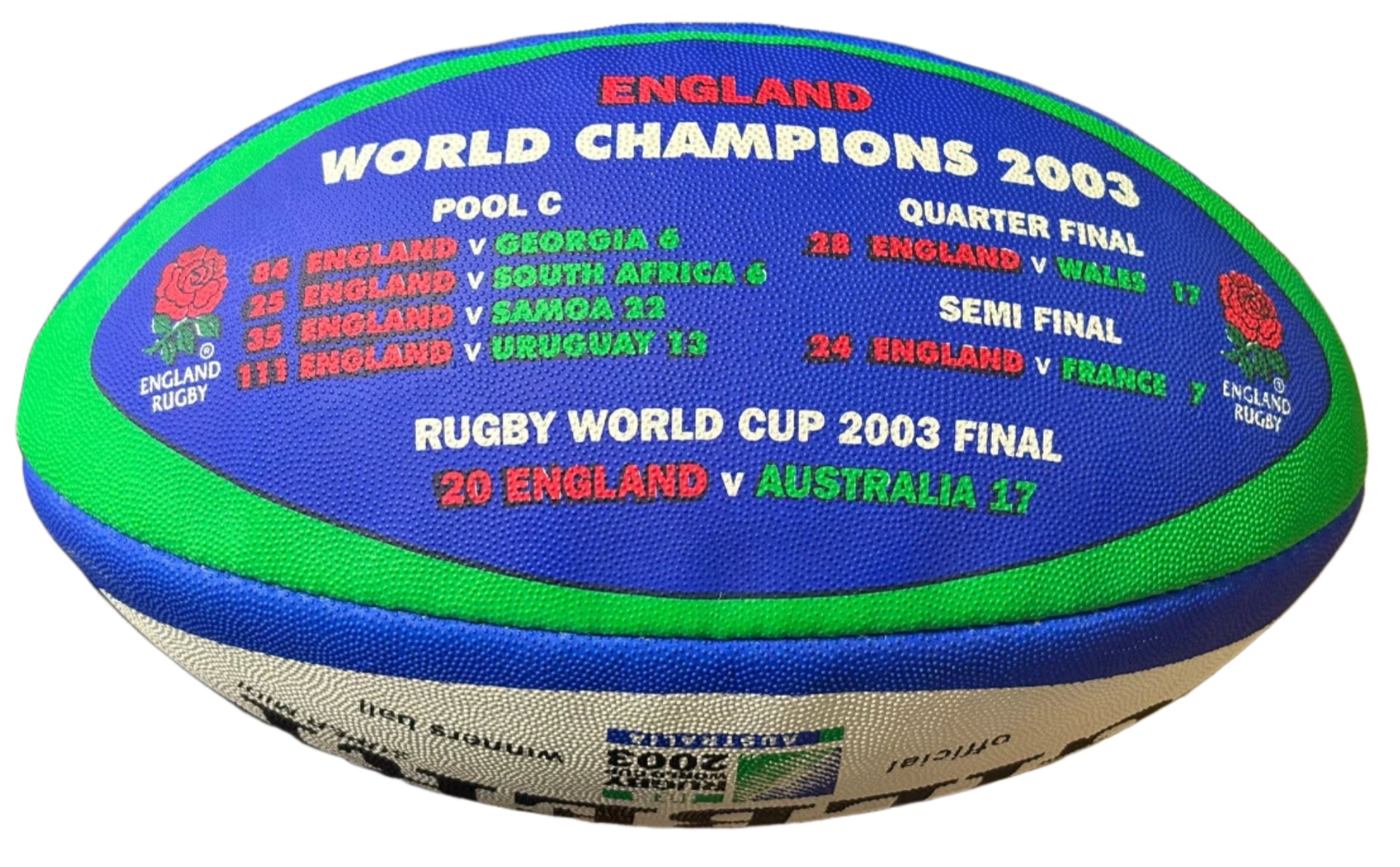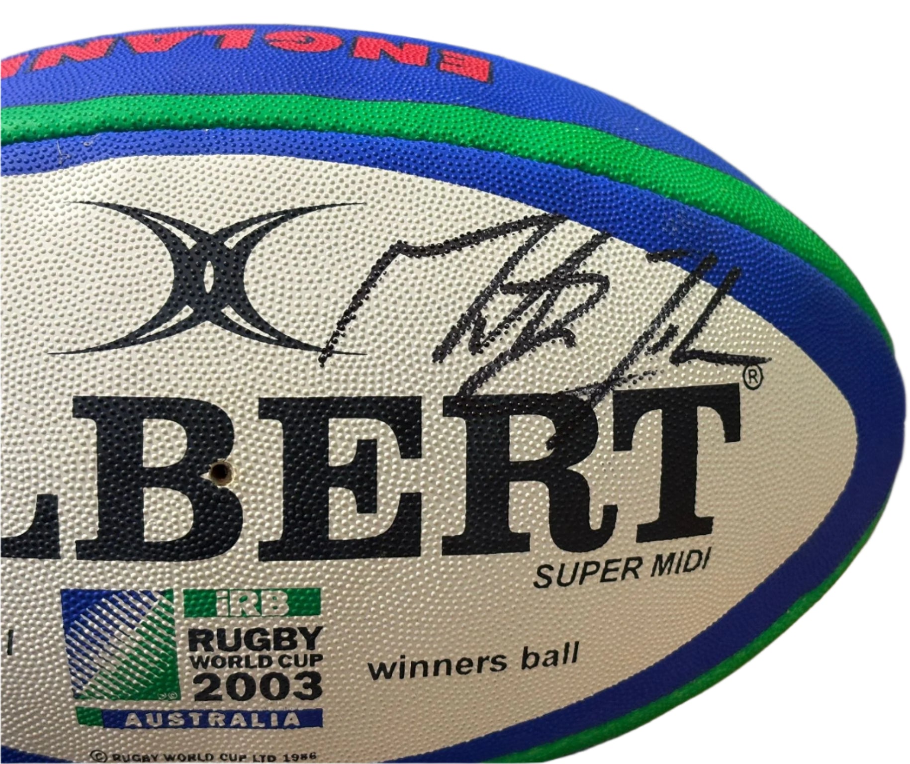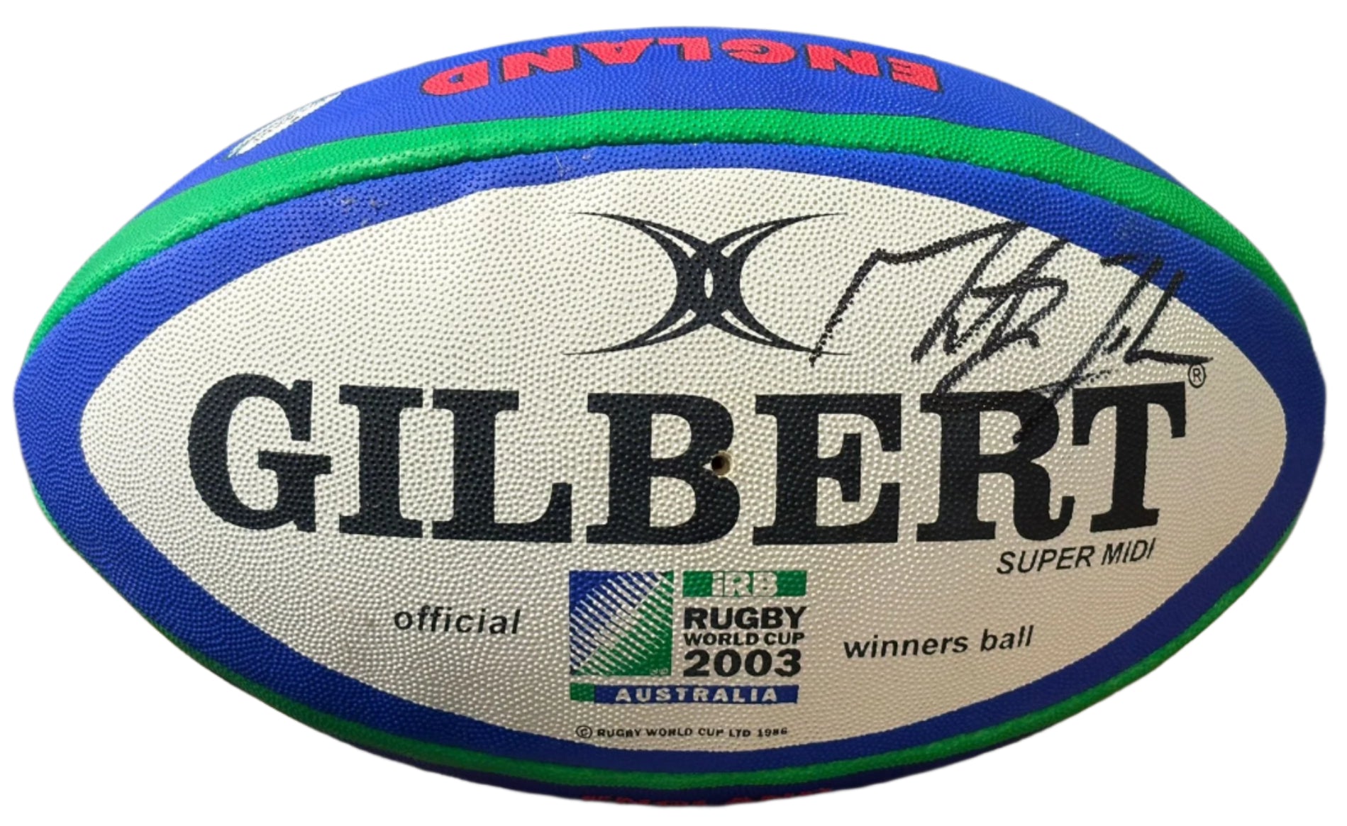 This rare official winners rugby ball is signed by Martin Johnson, the respected 2003 England Rugby World Cup Captain. Johnson's signature adds both value and authenticity to this collectible item. Complete with a Certificate of Authenticity, it's a must-have for any fan.