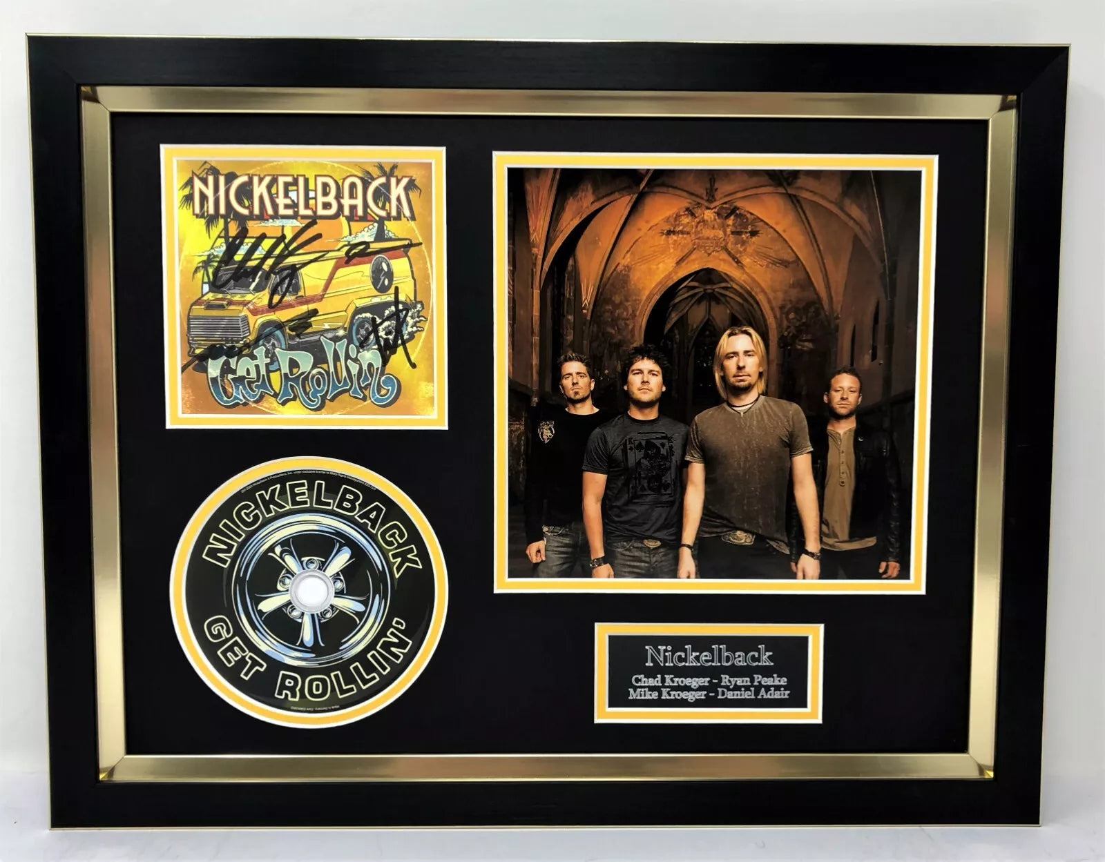 Nickelback Complete Band Signed & Framed 'Get Rollin' CD Display with COA