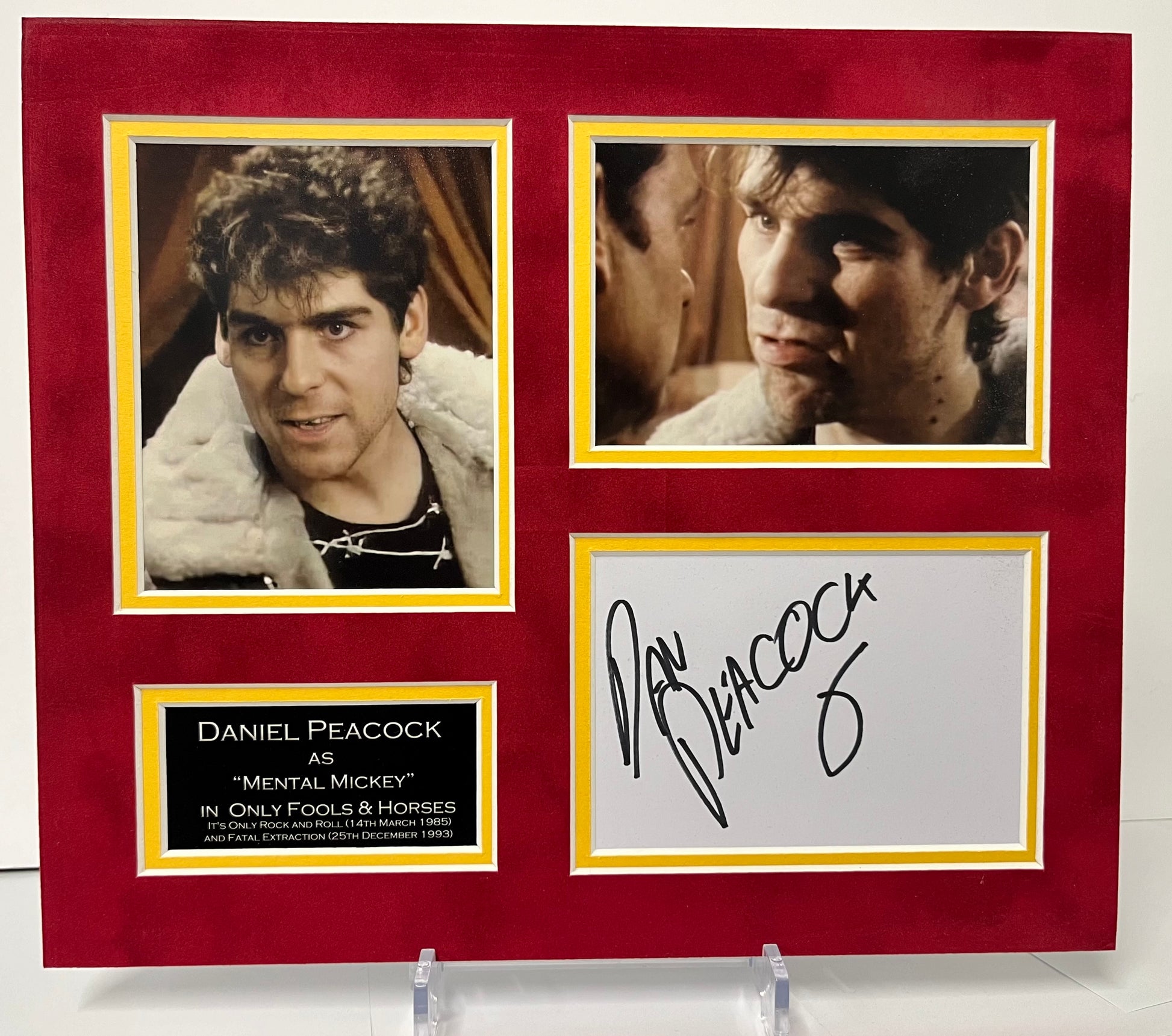 On offer here is a mounted display signed by Daniel Peacock who played Mental Mickey in the Sitcom Only Fools and Horses. The display comes with a COA.