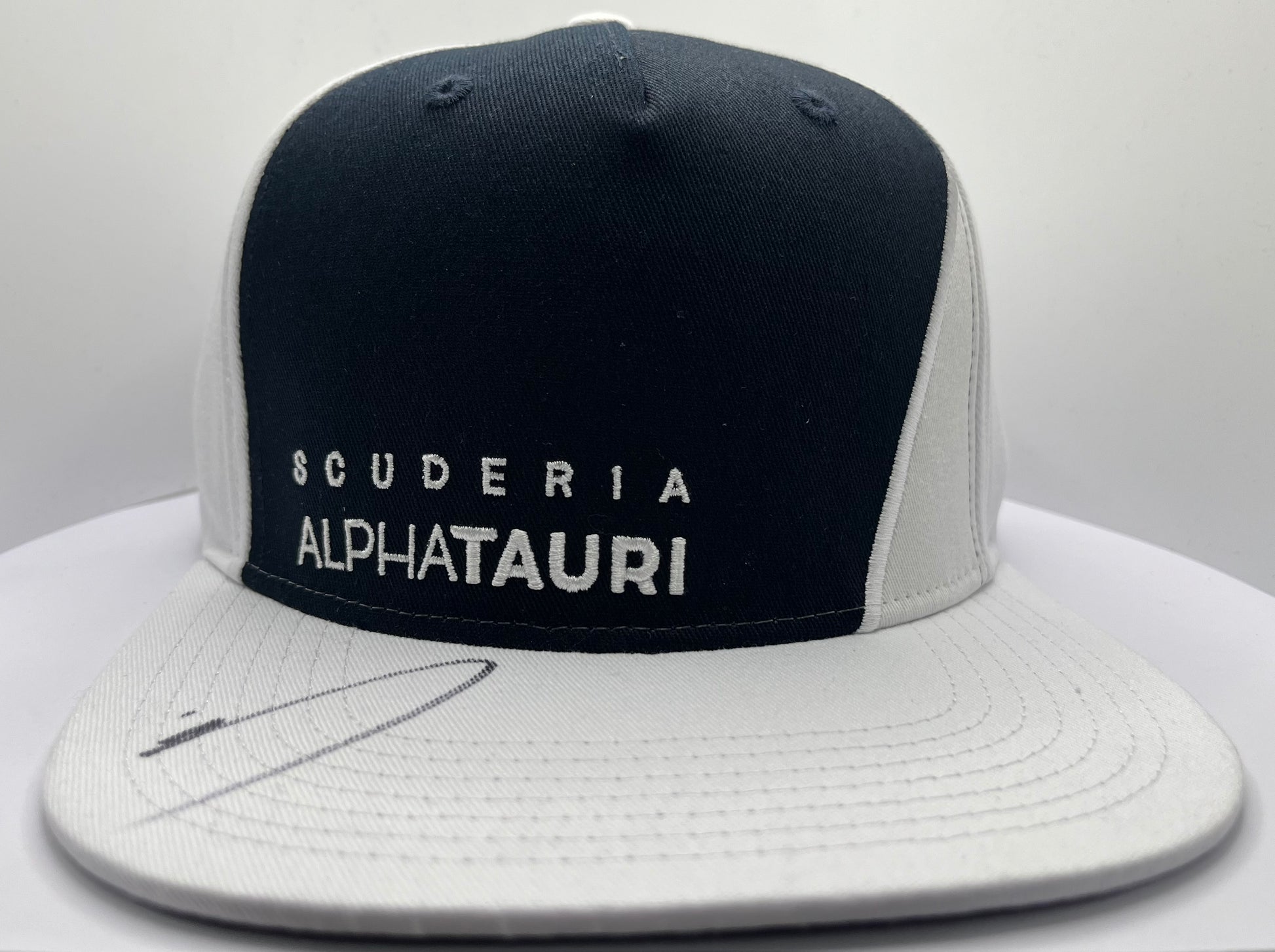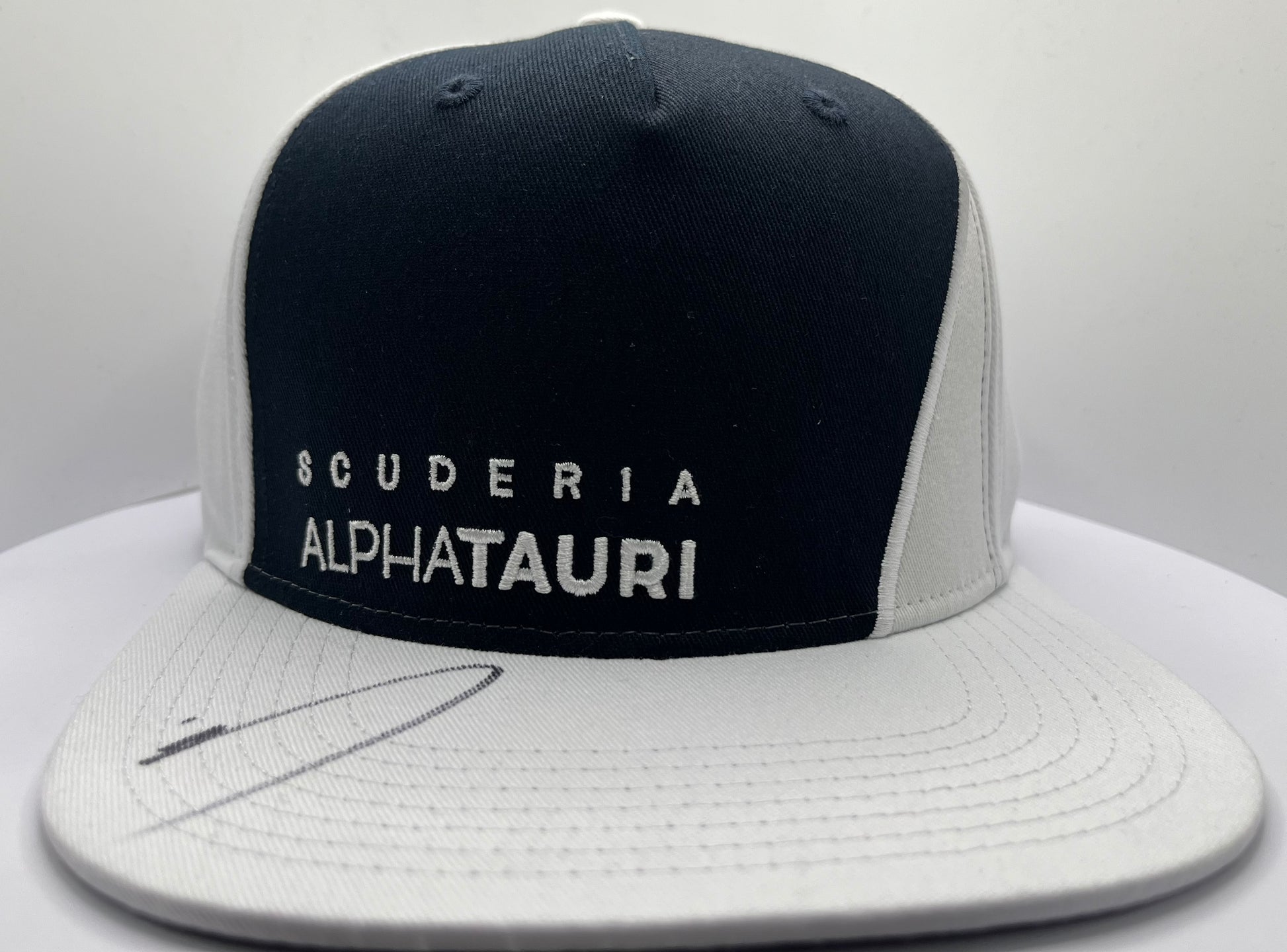 Pierre Gasly Signed Scuderia AlphaTauri Black & White Flat- Brim F1 Cap with COA