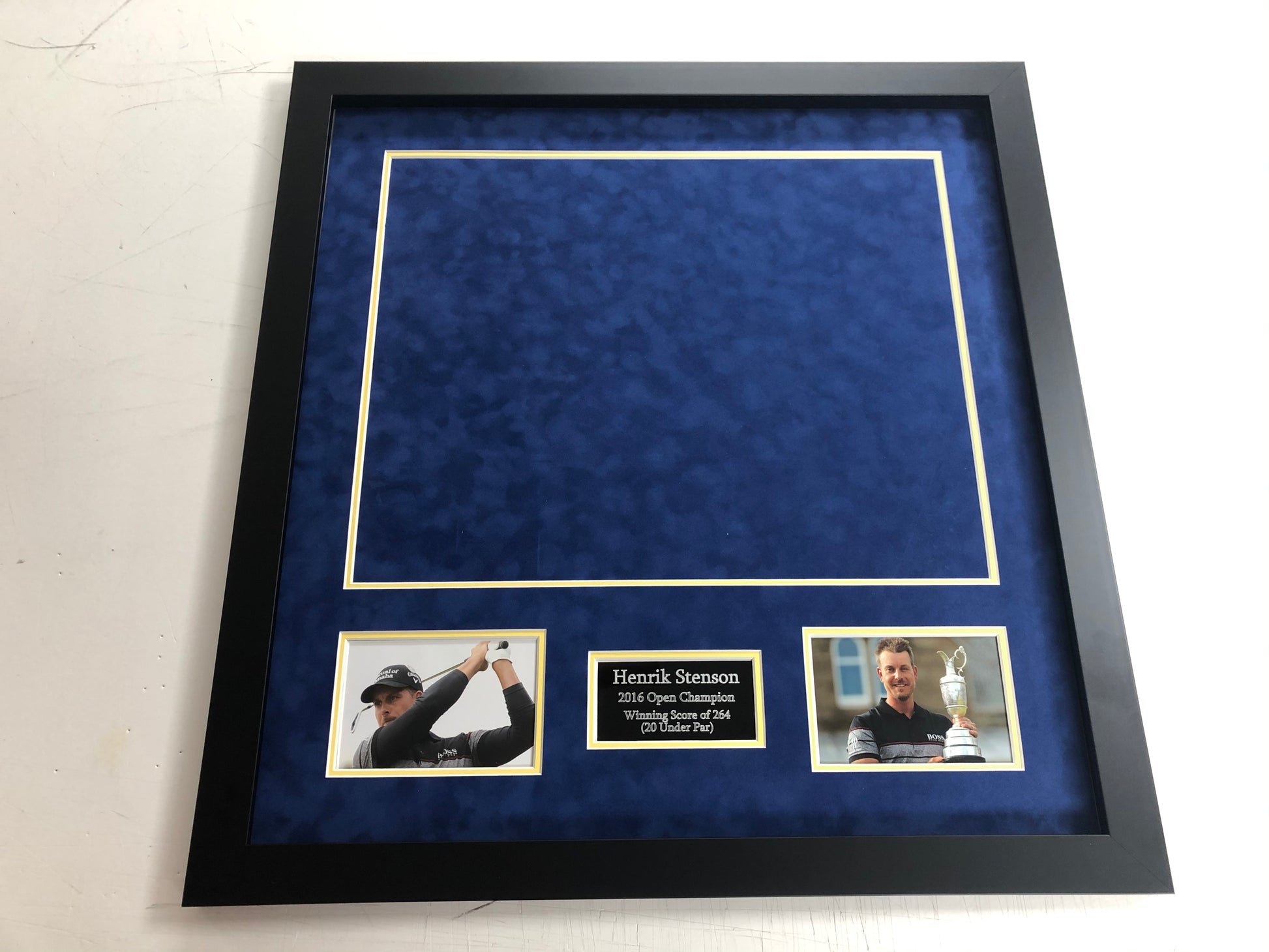 On offer here is a premium framing kit to add a flag to, signed or unsigned, by the Open Champion perhaps. Once completed these pieces make a wonderful display.