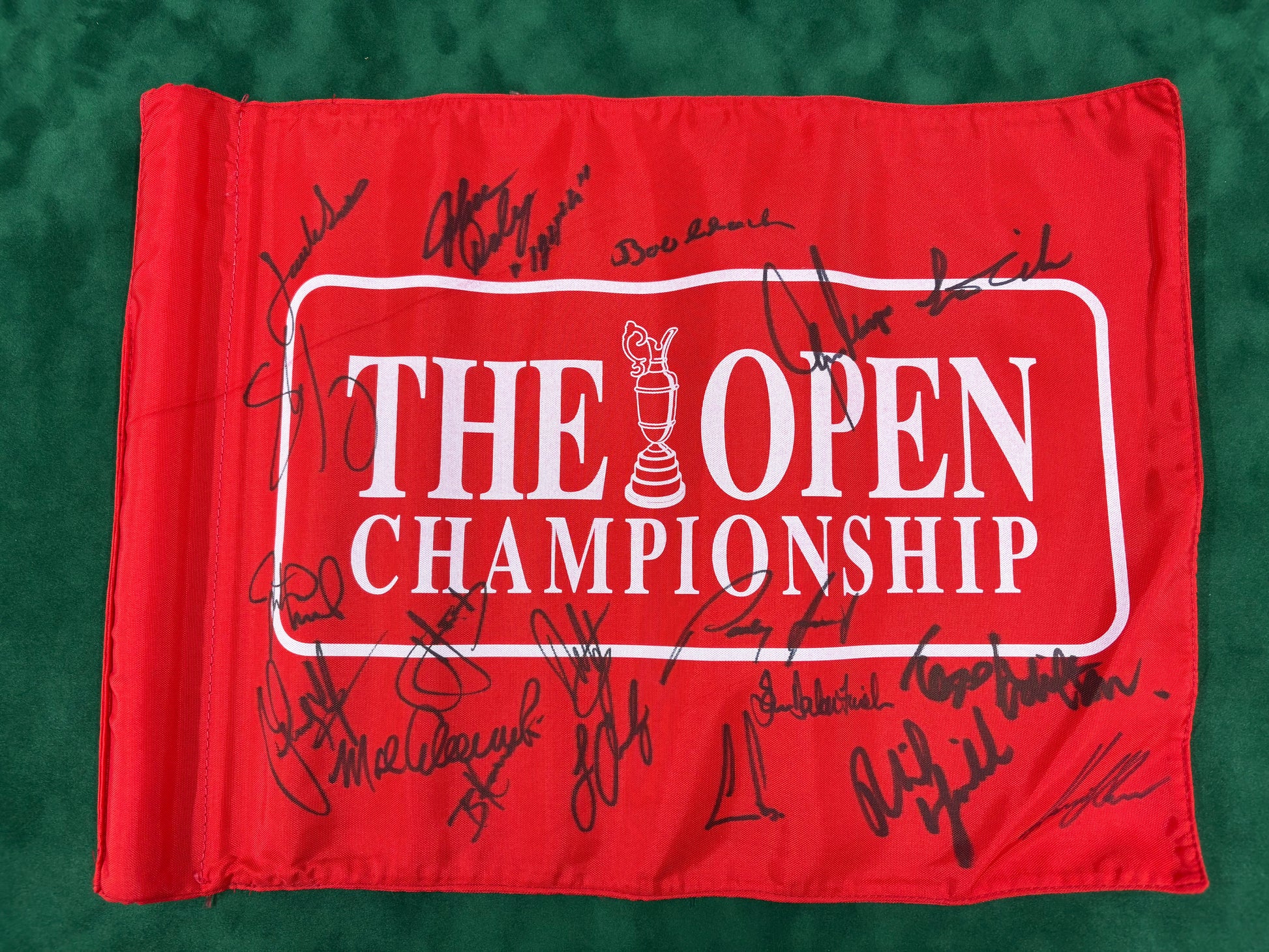 Rare Practice Round Course Flown Red Golf Flag Signed 19 Open Champions (Daly, Spieth) + Cert