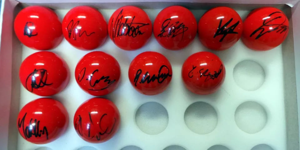 RARE Set of 32 Signed RED Snooker Balls by 2023 Crucible Players + Dealer COA
