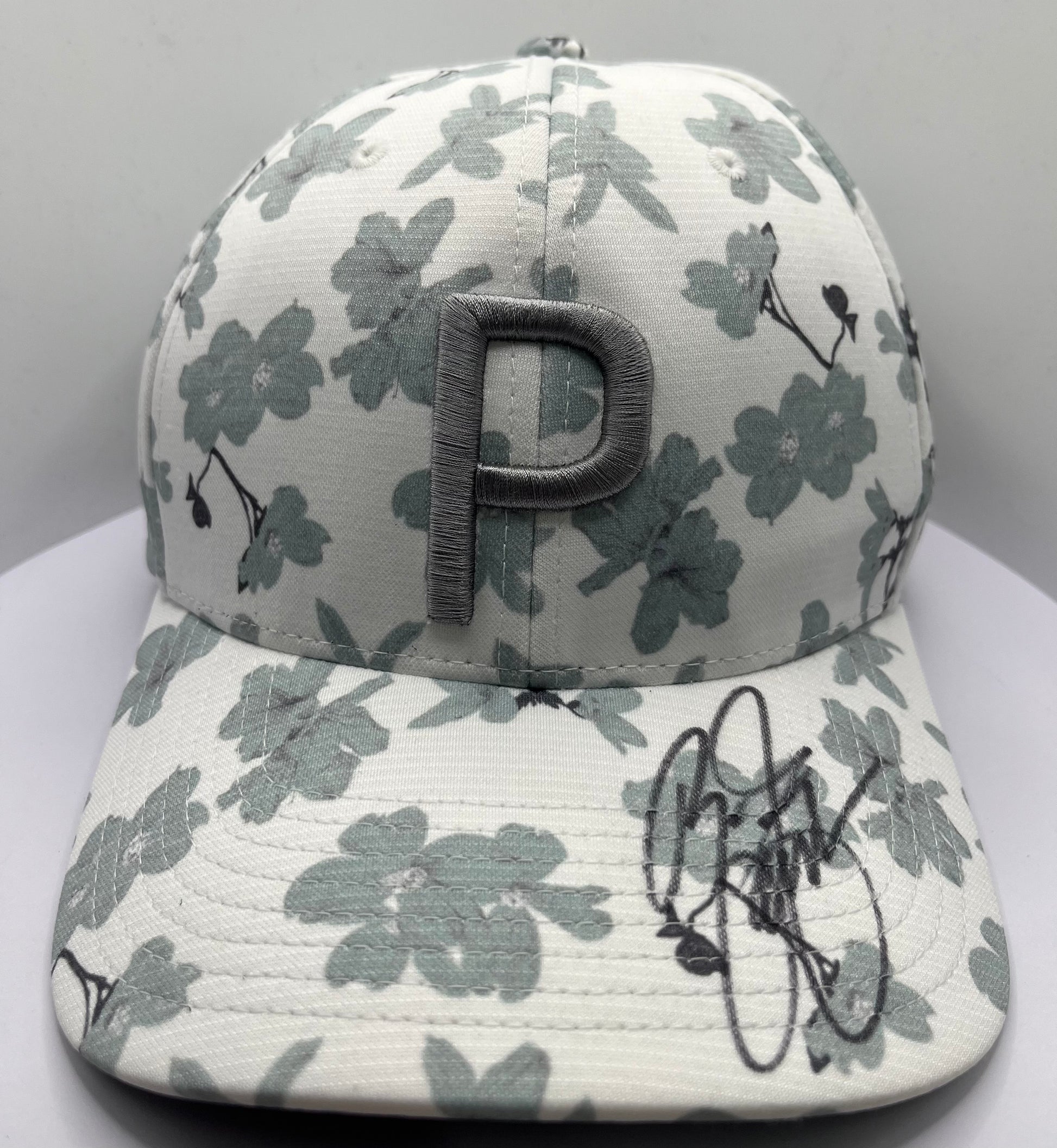 This Rickie Fowler signed grey Puma golf cap with COA is a must-have for any golf fan or collector. With the signature of pro golfer Rickie Fowler, this cap is a unique and valuable piece that will make a great addition to any collection. The included COA provides assurance of its authenticity.