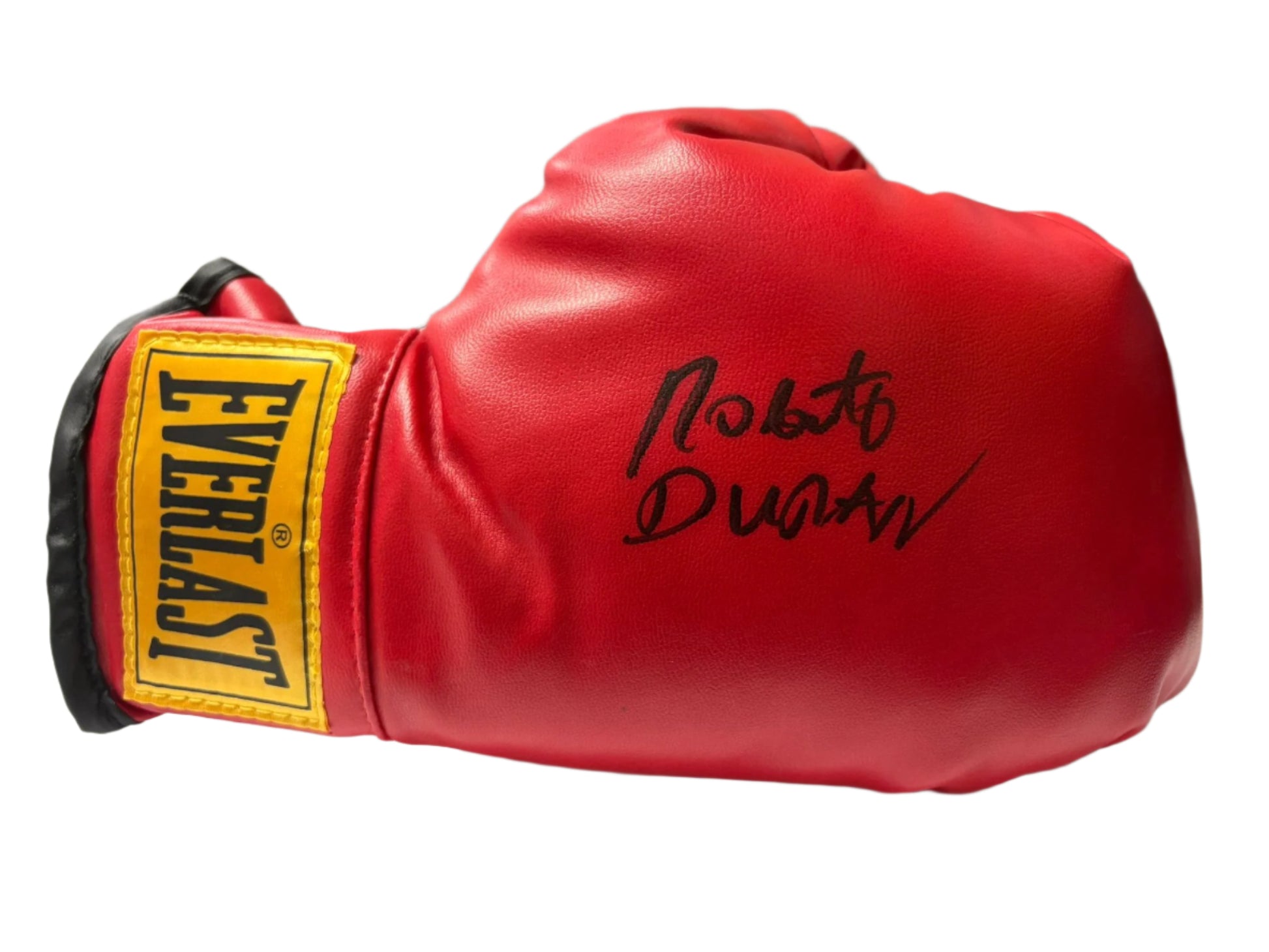 Experience the power and strength of world champion boxer Roberto Durán with this signed red Everlast boxing glove. The perfect addition to any sports memorabilia collection, this glove comes with a certificate of authenticity. Own a piece of boxing history today.