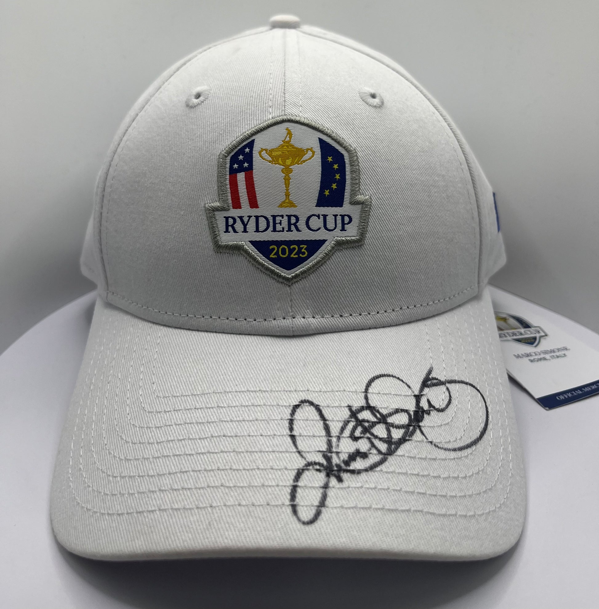 This limited edition cap is signed by Rory McIlroy and commemorates the historic 2023 Ryder Cup held at Marco Simone, where Europe triumphed over the USA with a score of 16 1/2 to 11 1/2. Comes with a certificate of authenticity. A must-have for golf enthusiasts.