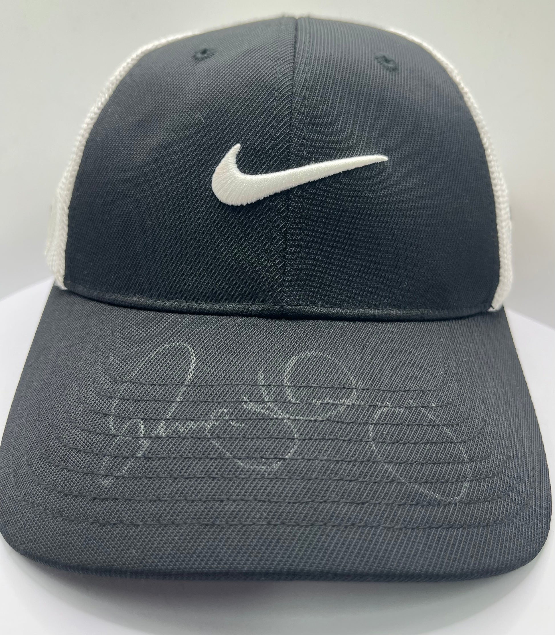 This black and white Nike Golf cap has been personally signed by golfing legend Rory McIlroy. With a certificate of authenticity, this cap is a must-have for any golf enthusiast. Show off your love for the sport with this unique and valuable piece.
