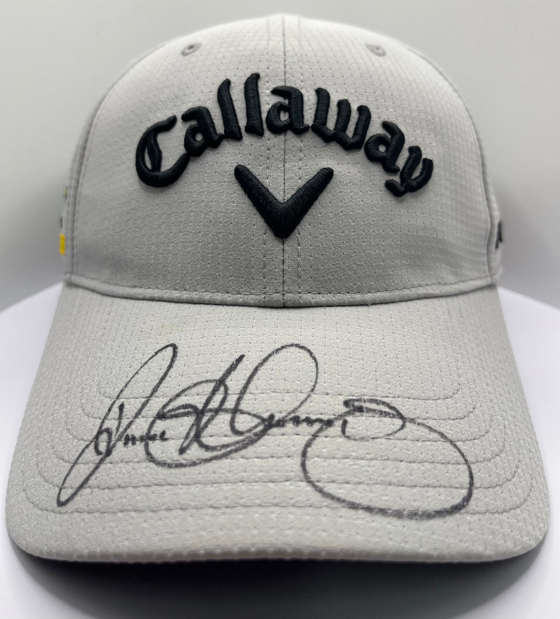 This grey Callaway golf cap has been personally signed by Rory McIlroy and comes with a Certificate of Authenticity. Show your support for the golf legend and enhance your collection with this authentic piece. Perfect for fans and collectors alike.