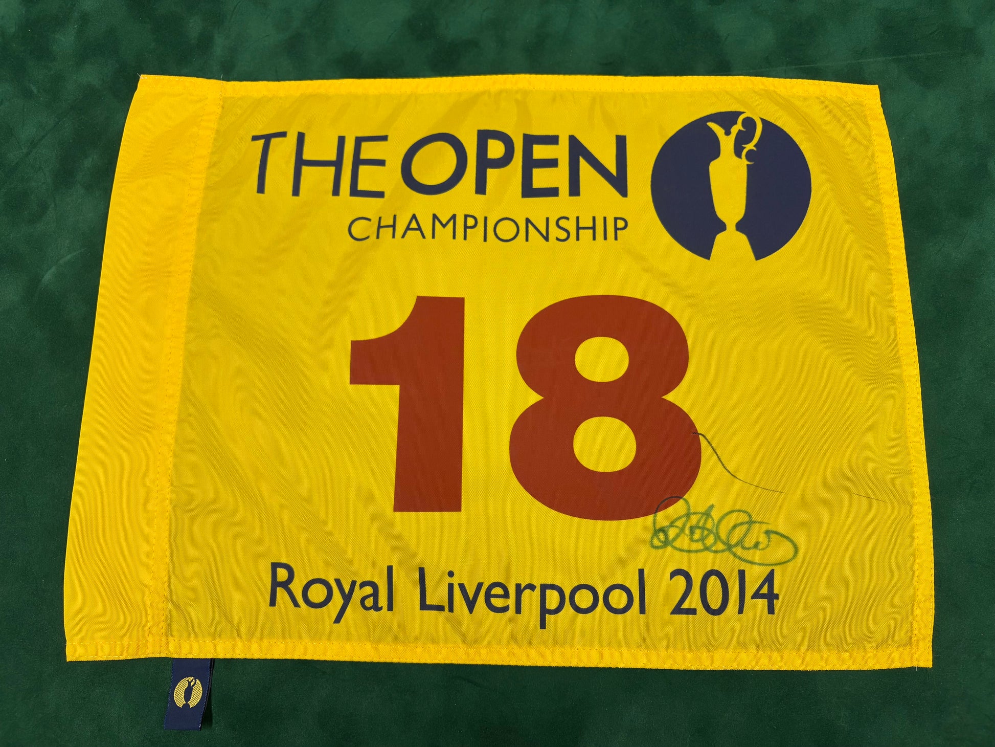 Rory McIlroy Winner Signed 2014 Open at Royal Liverpool Golf Flag + Dealer COA