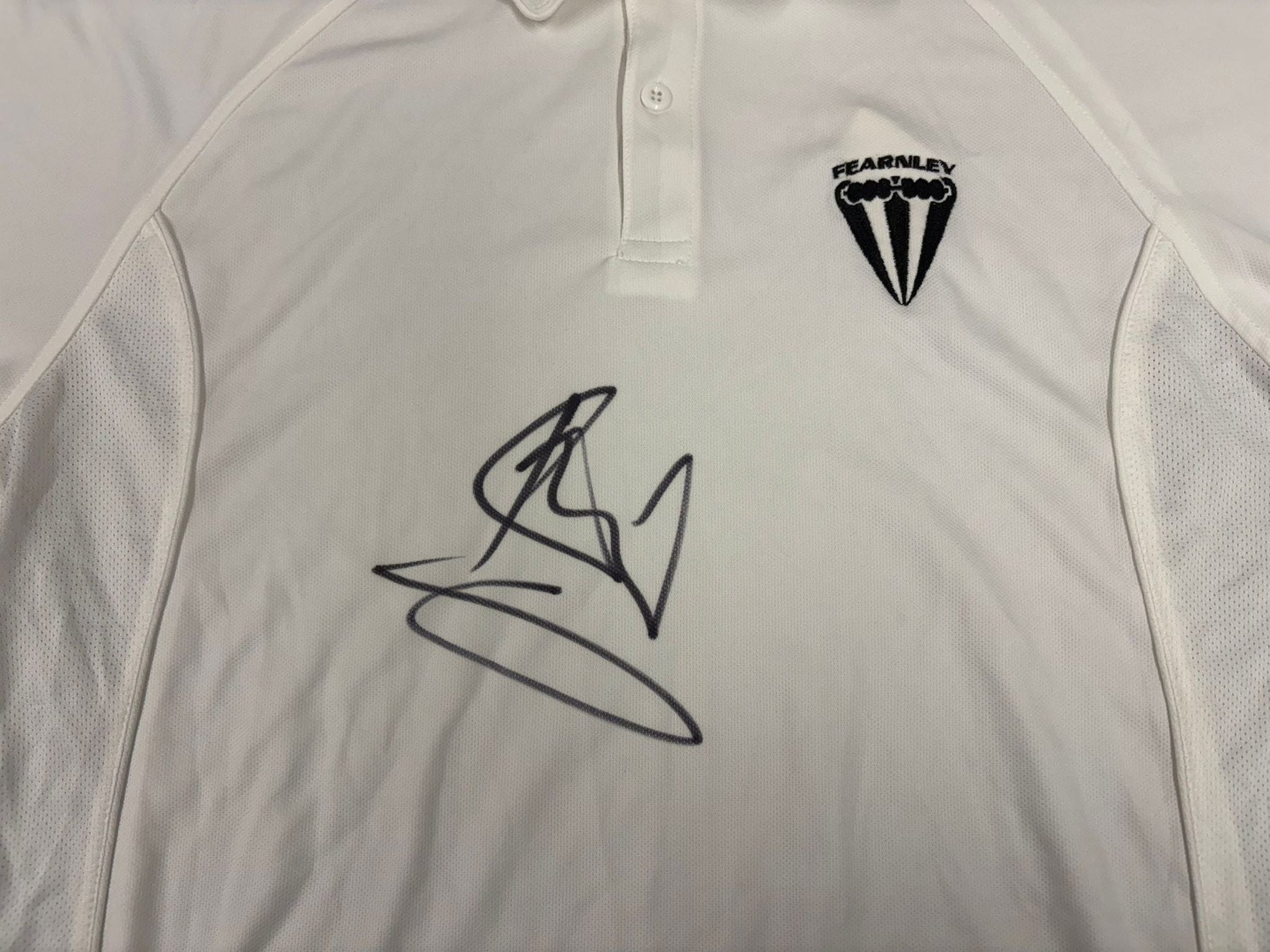 Celebrate cricket history with this authentic Duncan Fearnley cricket shirt signed by Sir Ian Botham, one of England’s greatest all-rounders. Perfect for collectors and enthusiasts, the shirt comes with a certificate of authenticity, ensuring its provenance. Display this iconic memorabilia to honour Botham’s legendary career and his lasting impact on the sport.