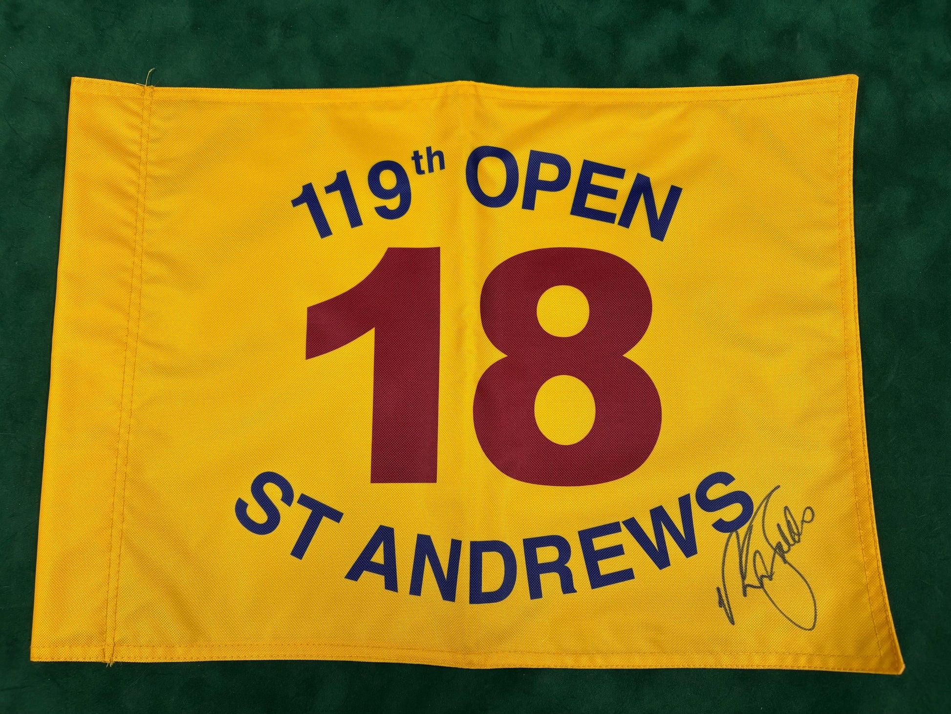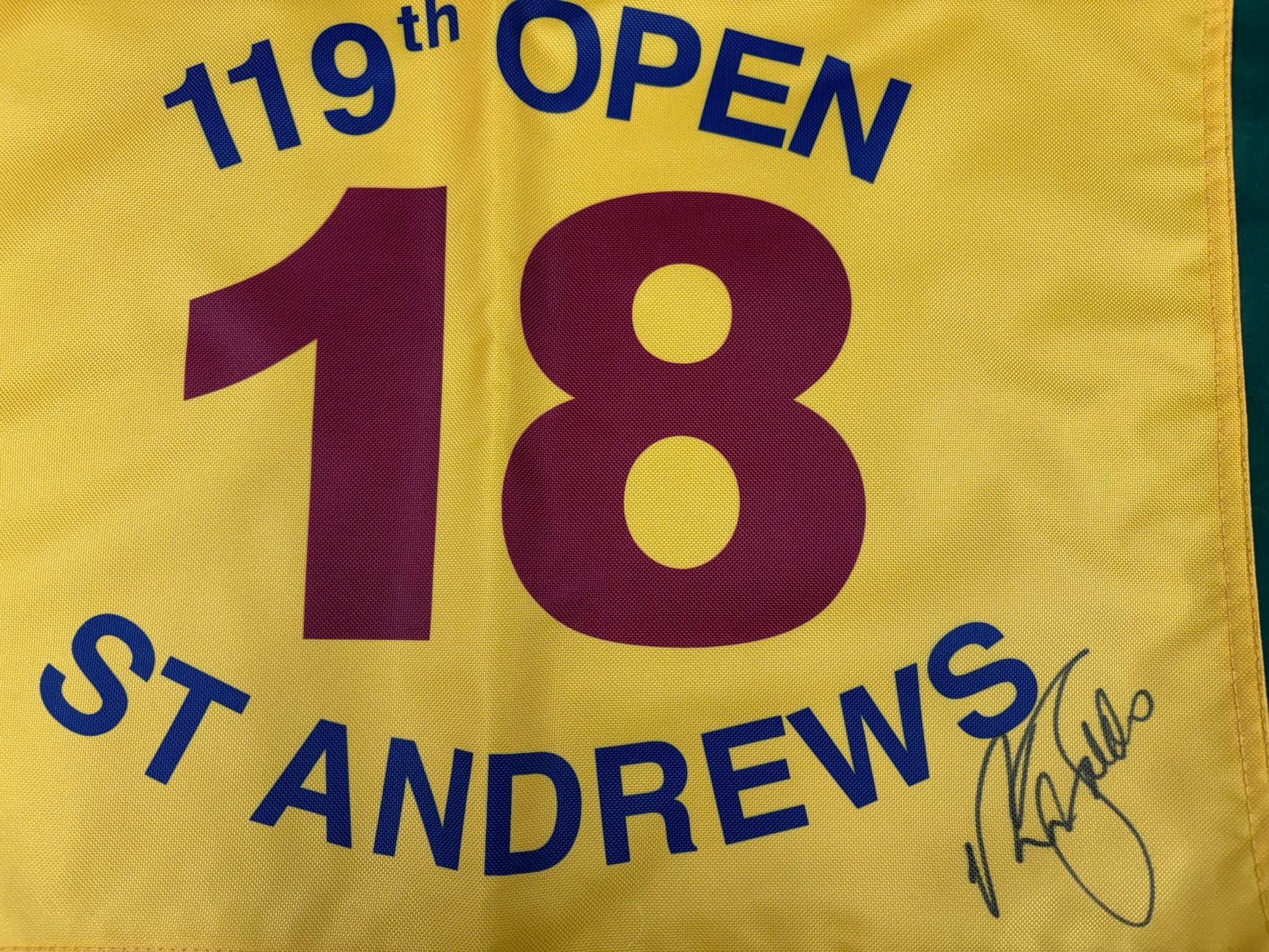Sir Nick Faldo Winner Signed 119th Open at St Andrews Golf Flag + Dealer COA