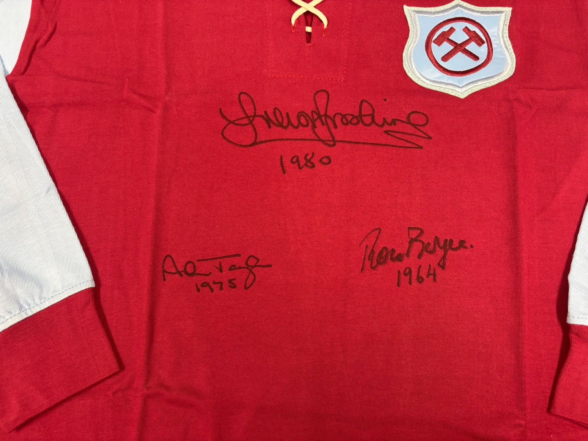 Sir Trevor Brooking, Ronnie Boyce & Alan Taylor Signed Retro West Ham Football Shirt + COA