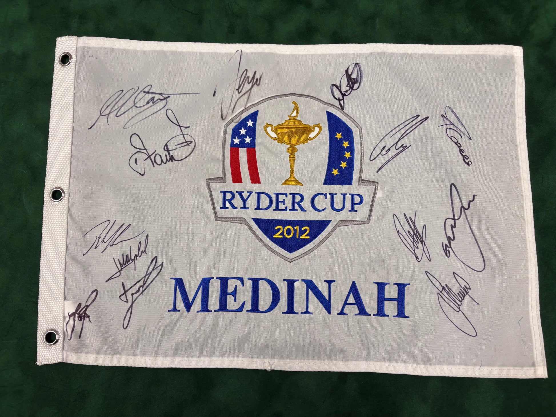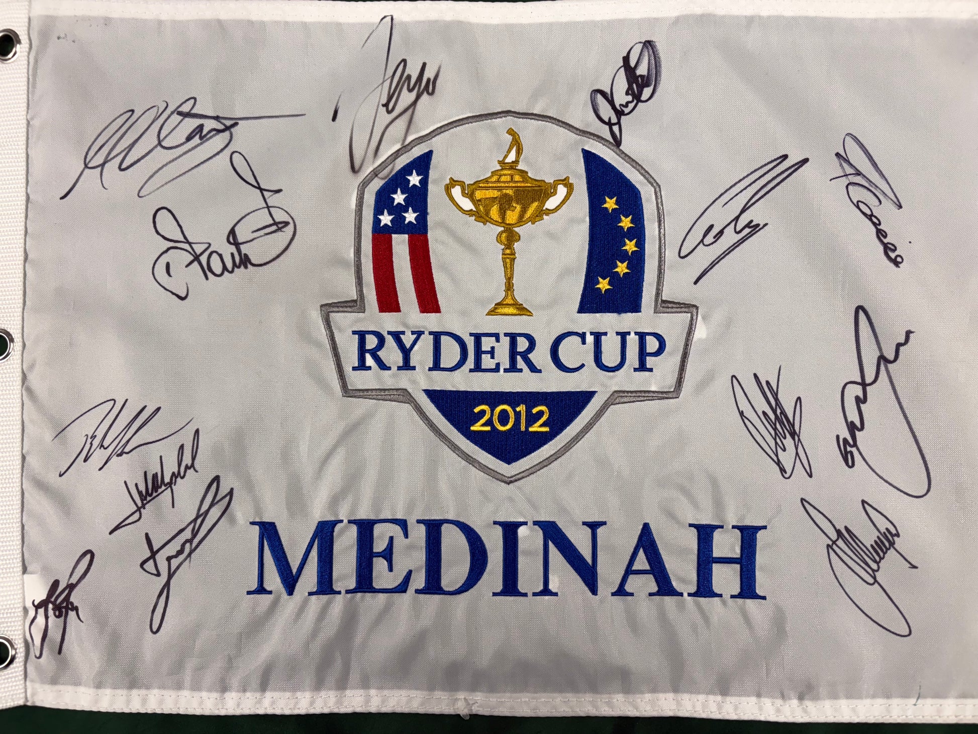 On offer here is a 2012 Ryder Cup at Medinah Golf Flag signed by: