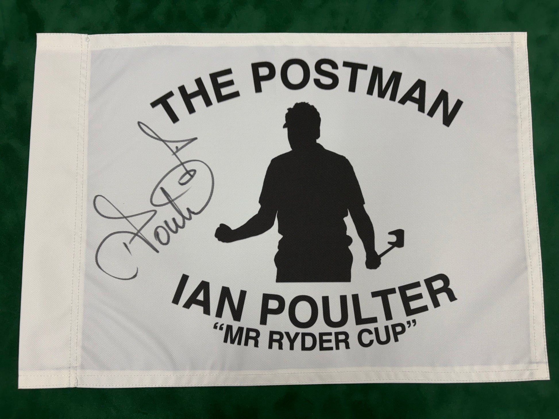 The Postman - Ian Poulter 'Mr Ryder Cup' Signed White Golf Flag + Dealer COA