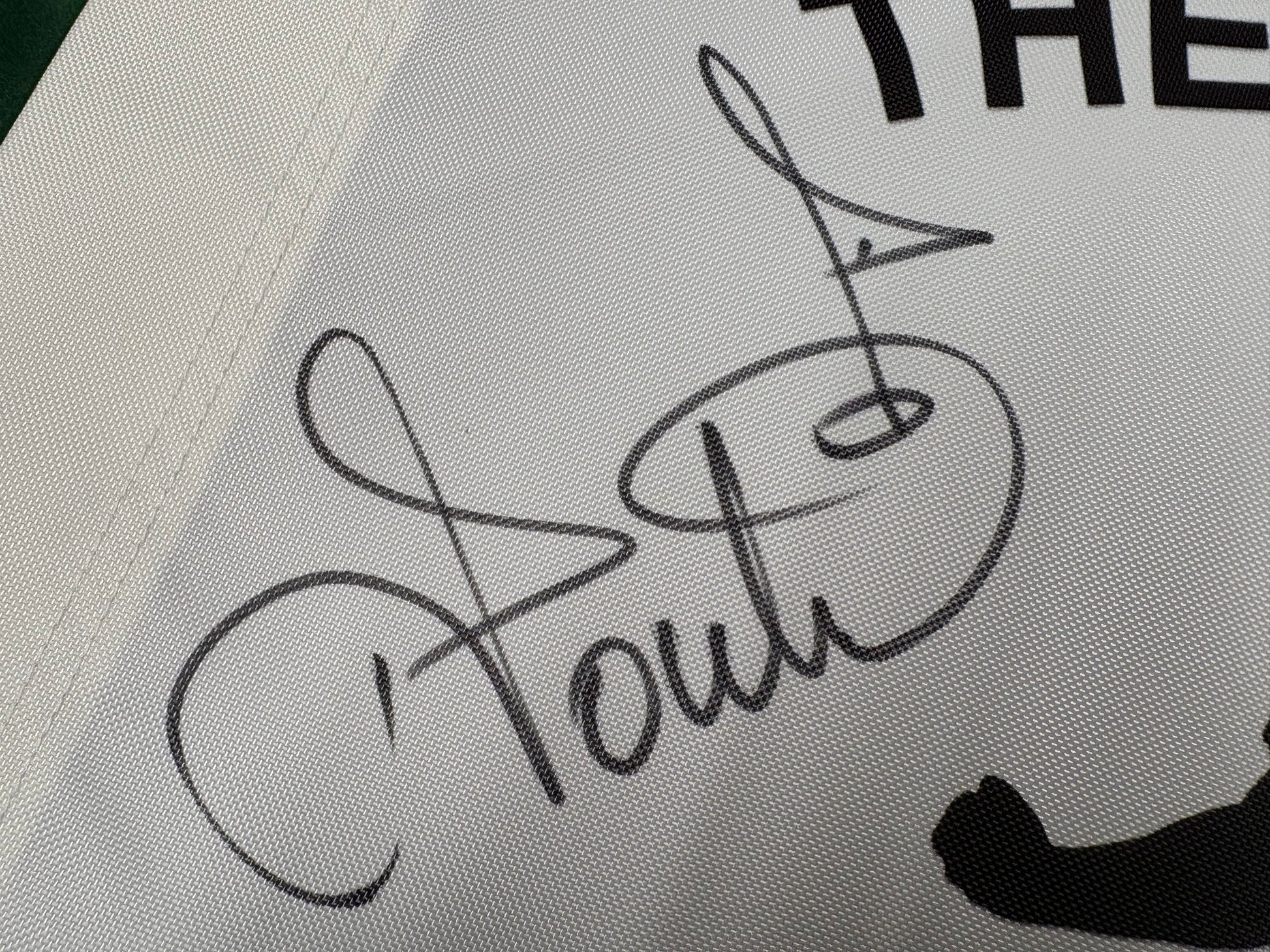 Discover the ultimate collector's item for any golf fan, a signed white golf flag by Ian Poulter, known as 'Mr Ryder Cup.' This exclusive flag comes with a dealer COA and is aptly named after Poulter's reputation for always delivering success on the course ie 'The Postman'. Don't miss out on this opportunity to own a piece of golf history.