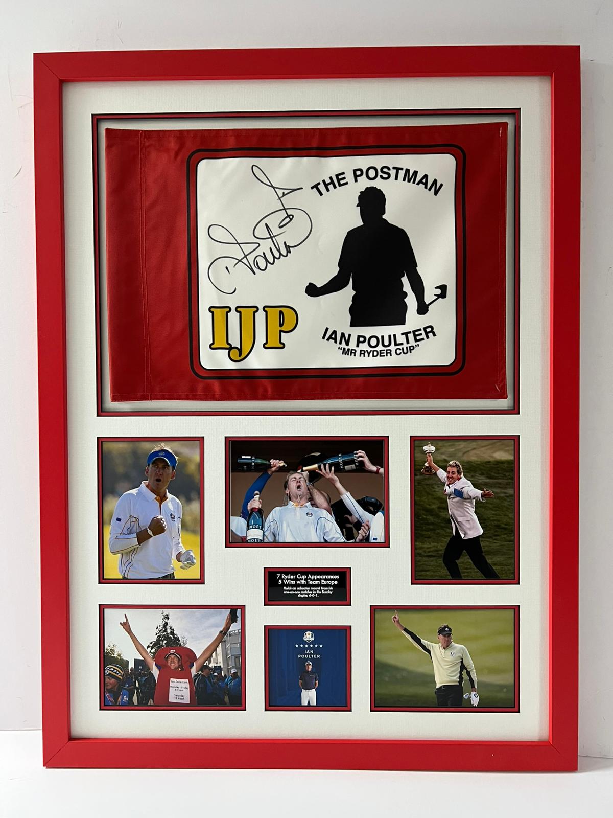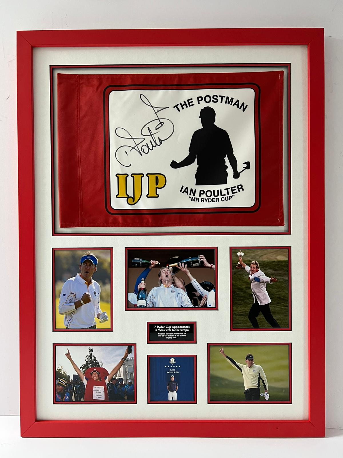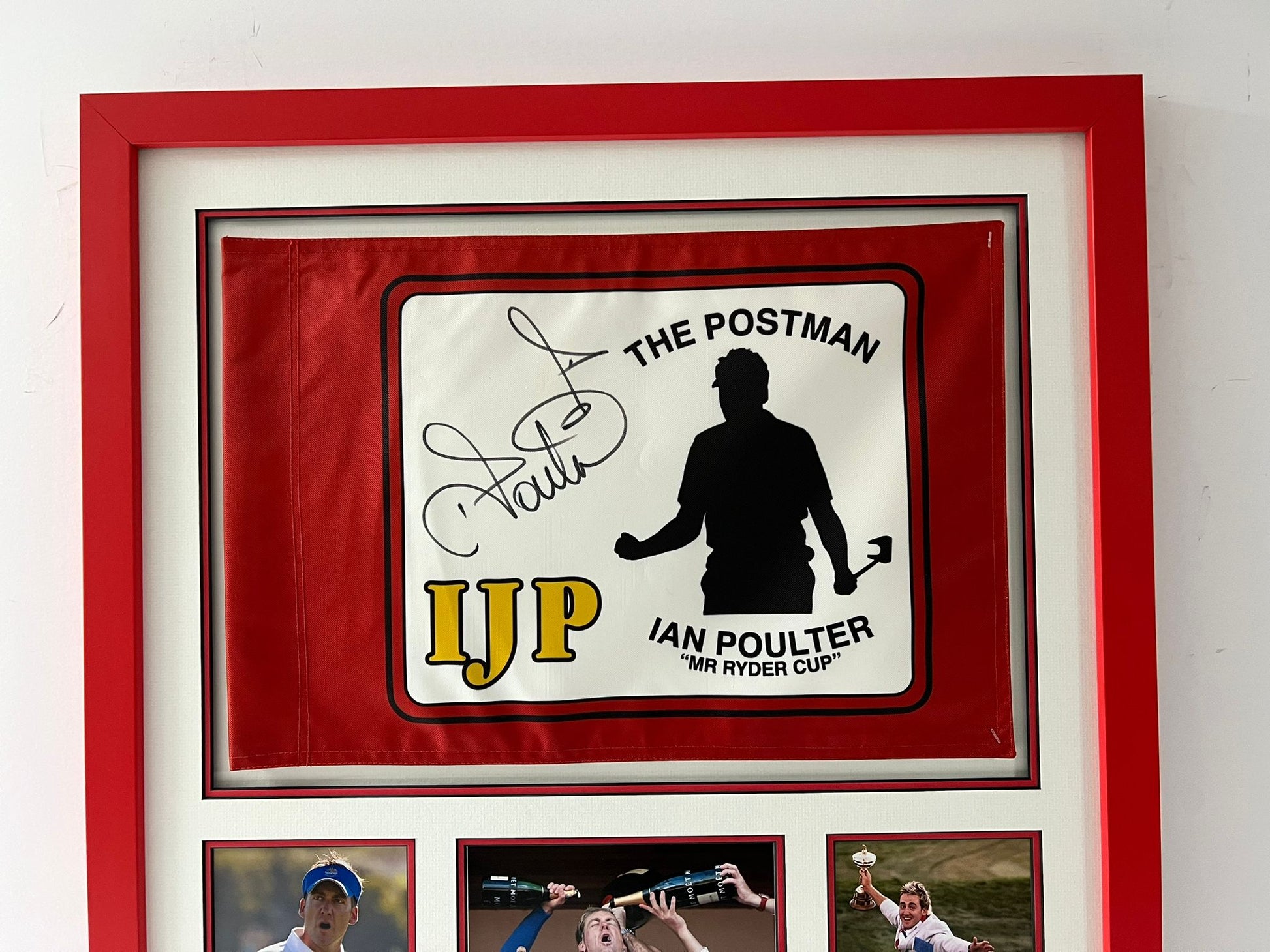 'The Postman' Ian Poulter Signed & Framed Golf Pin Flag Display + Dealer COA (Red Frame)